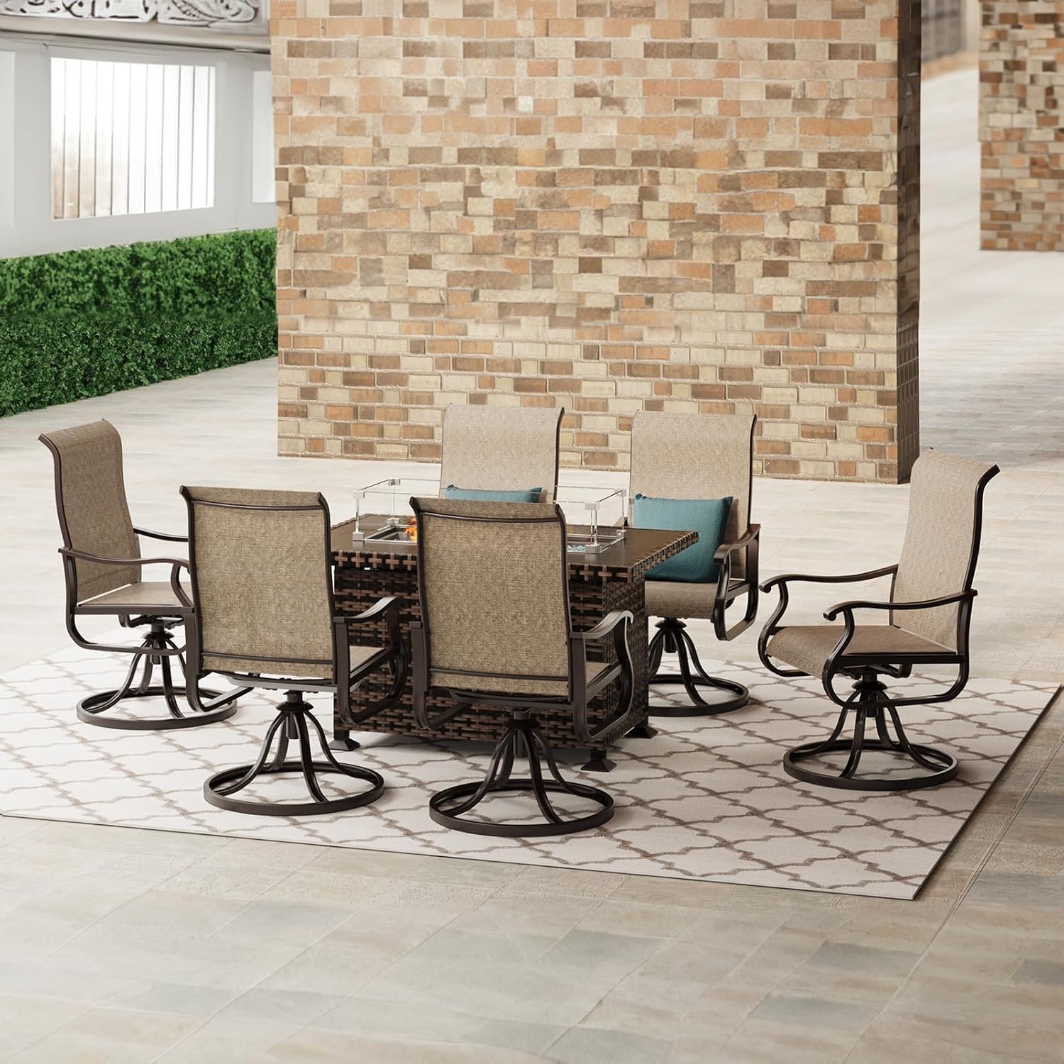 Amopatio Patio Swivel Chairs Set of 6, Outdoor Swivel Rocker Dining Chairs with All Weather Textilene High Back & Metal Frame, for Backyard Deck Lawn (Brown)