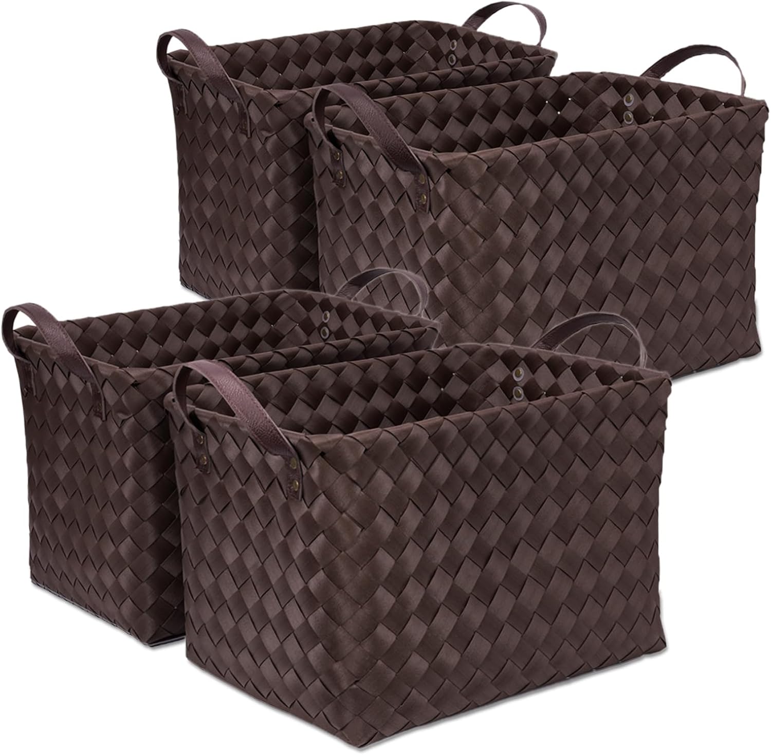 Handwoven Clothes Basket Laundry Hampers Large Wicker Storage Baskets for Shelves Blankets Closet Storage Bins Car Bedroom Bathroom Organizers and Storage Bath (Pack of 4, Espresso color)