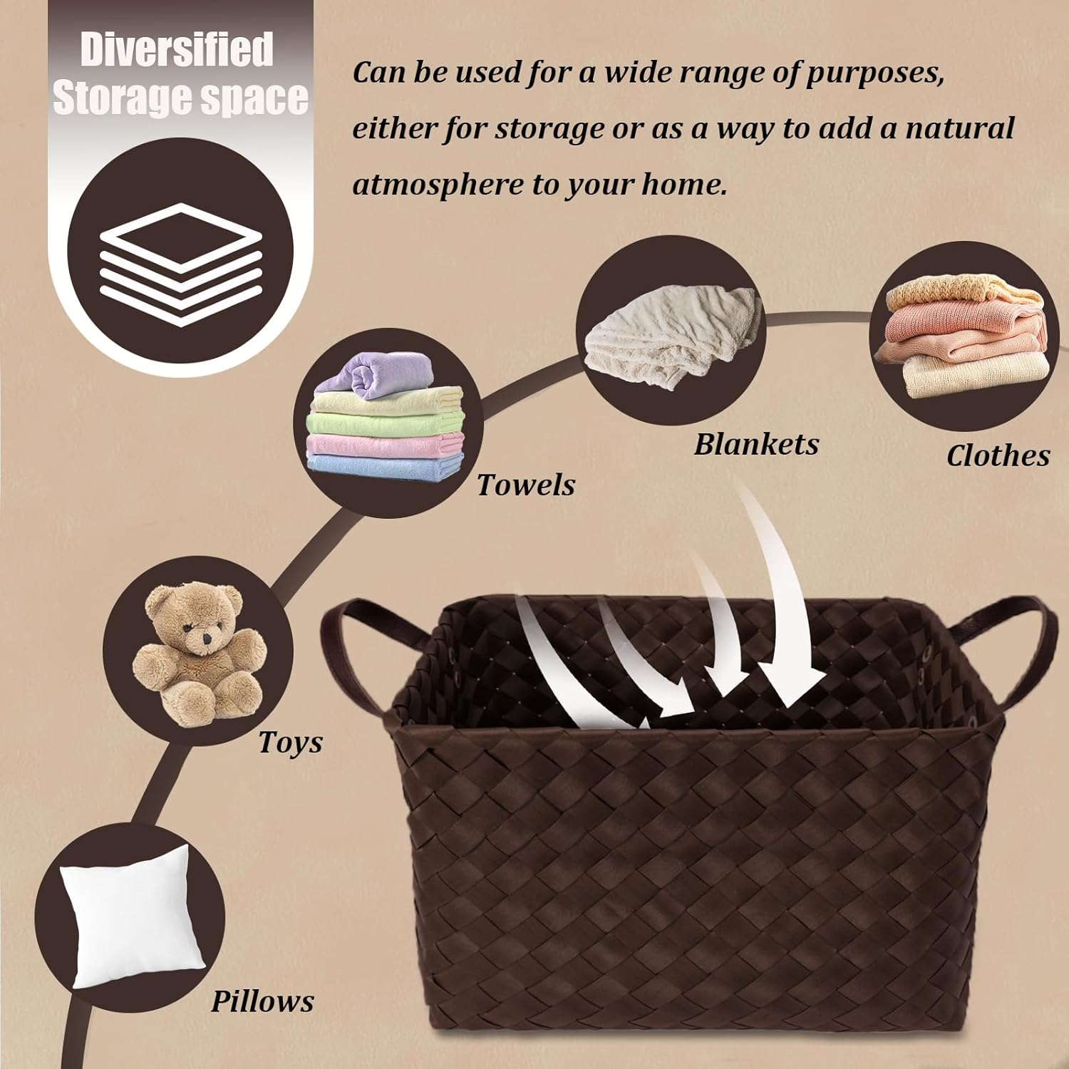 - 【Multiple-Use Storage Basket】These baskets for organizing help maintain daily cleanliness like blankets, clothes,pillows and toys. Great for using in the bathroom, bedroom, nursery, bedroom, living room, guest room, kitchen, office etc.