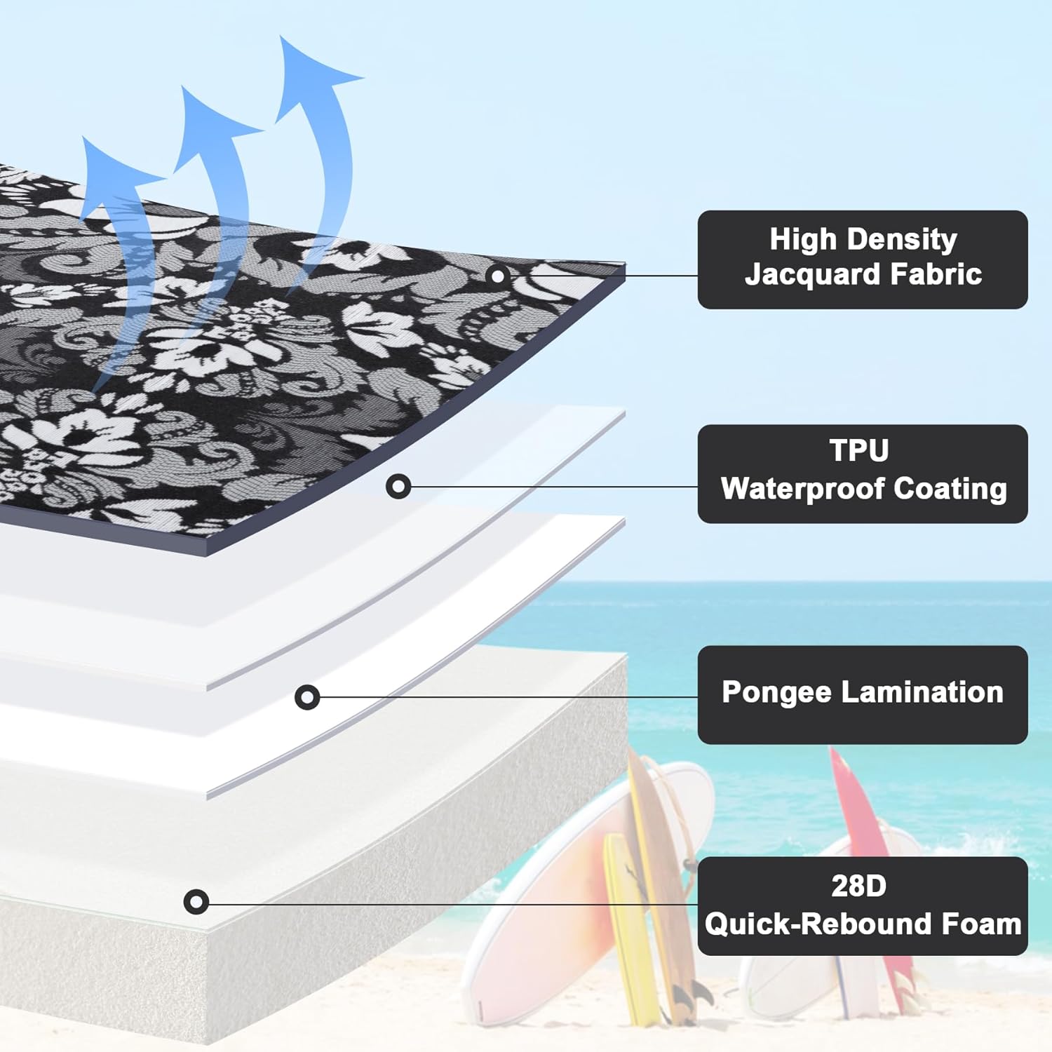 - Waterproof Cushions - Our outdoor cushions have a TPU waterproof coating on the cover and a hidden zipper to prevent water from entering the foam through the seams. Multiple ways to create our waterproof cushion.