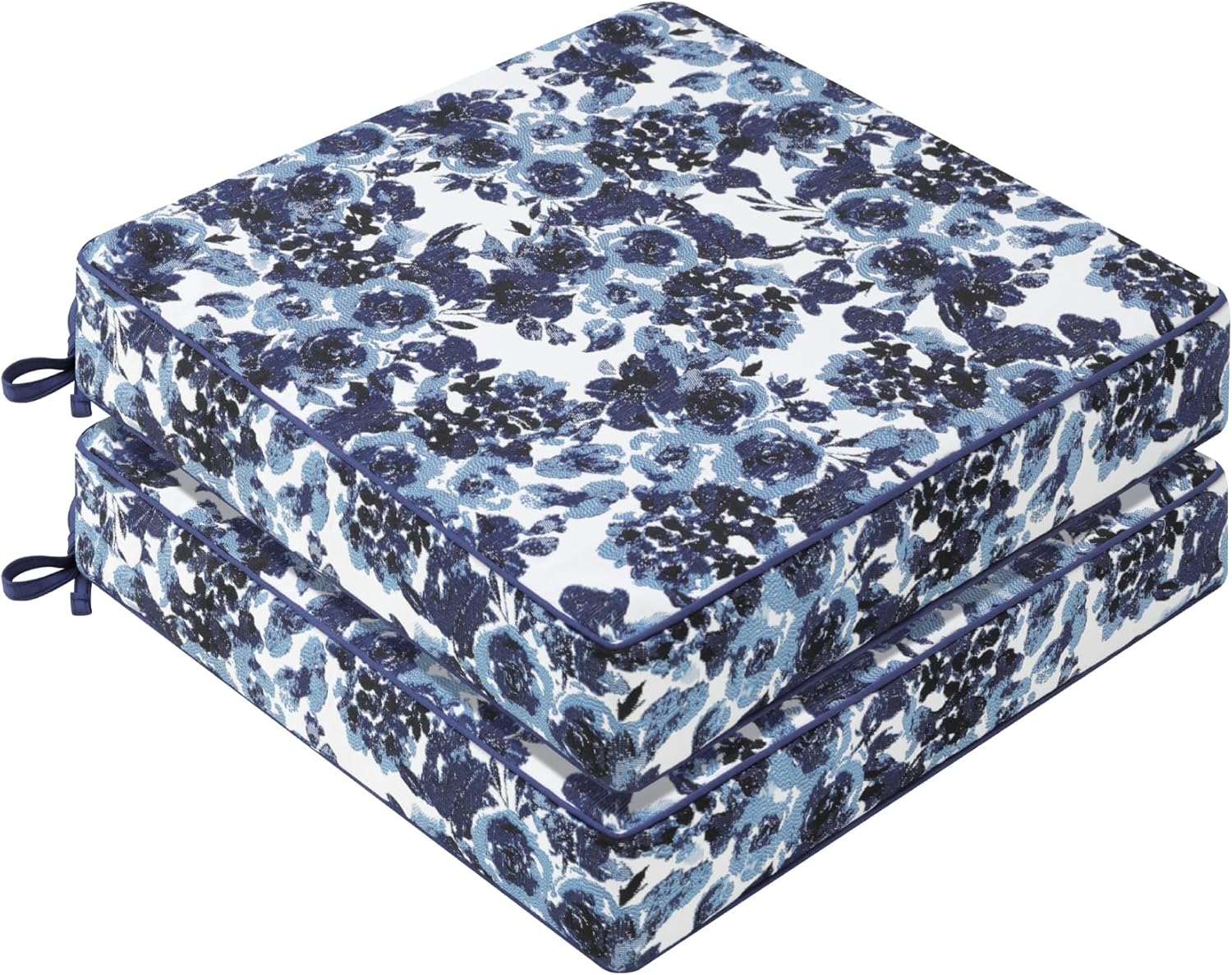 Favoyard Outdoor Chair Cushion 22 x 22 x 3 In Waterproof Pattern Fade Resistant Cushions for Patio Furniture with Removable Cover Attach Straps 28D Foam Insert Cushions Pads for Seat Sofa Couch 2 Pack
