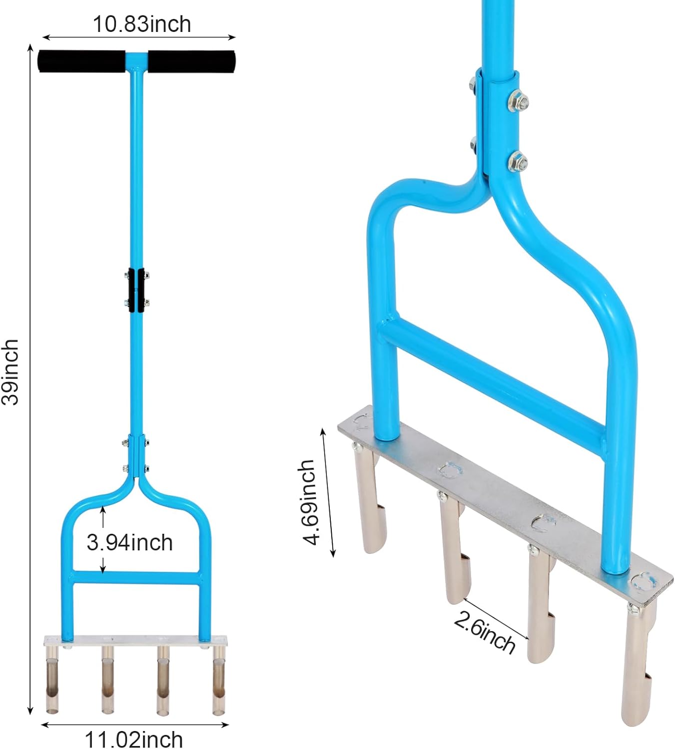 - EFFICIENT DESIGN: Manual lawn aerator with 4 hollow tines creates deep soil cores, measuring 39 inches tall with a 10.83-inch wide comfort grip handle