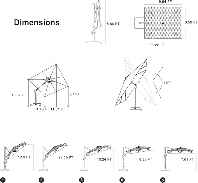 - Upgraded Swivel Function: This deck umbrella features a 360° rotation, a canopy that tilts left and right, and 6 adjustable positions to deliver optimal shade from every angle. Enjoy all-day comfort and a perfect outdoor experience.