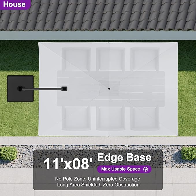 PURPLE LEAF 11' X 8' Swivel Outdoor Patio Aluminum Umbrella with Base Left-right Tilting Cantilever Offset Umbrella with UV Resistant Heavy Duty Fabric for Deck Pool Patio Backyard, Pebble Grey