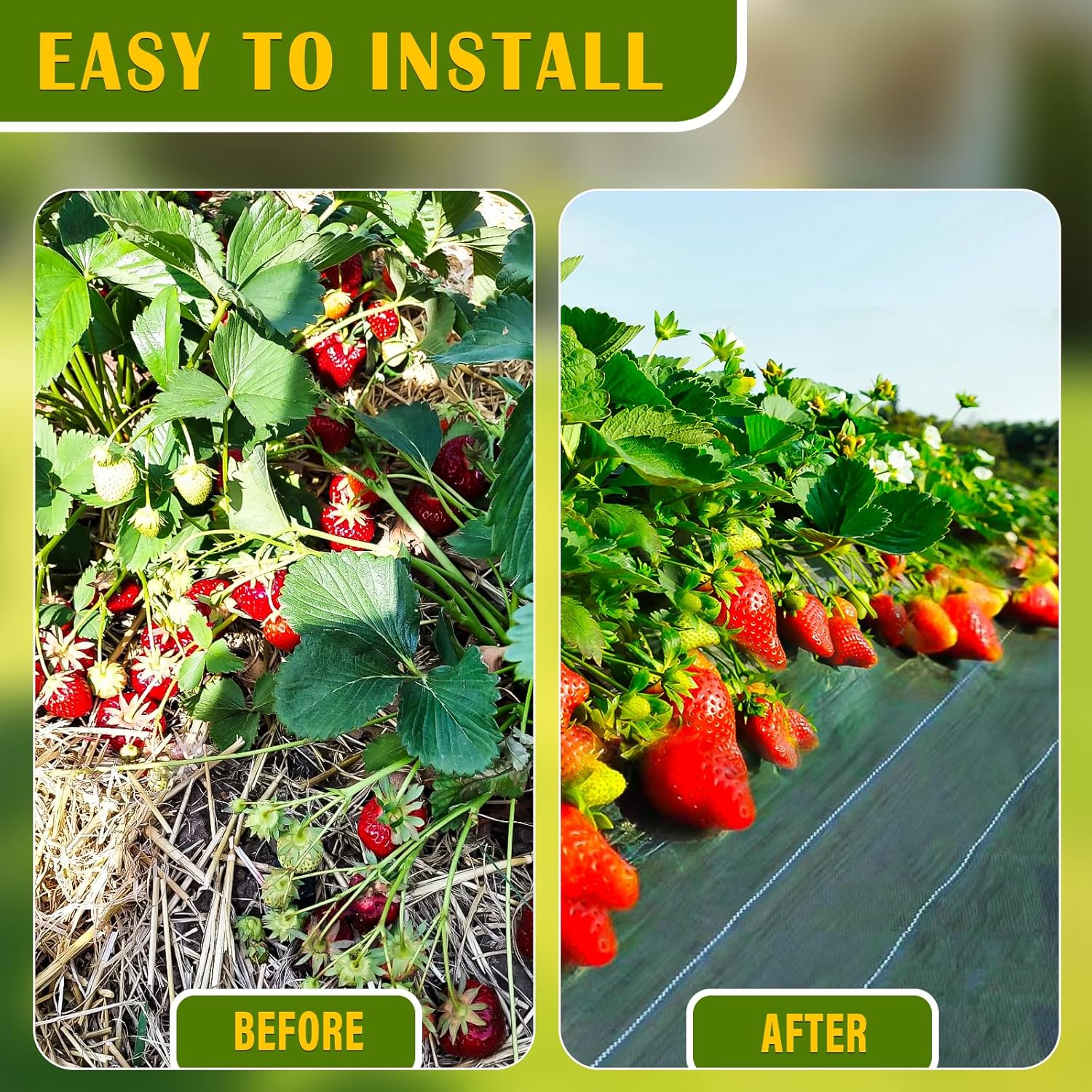 - High-Quality Garden Weed Barrier Fabric:This garden weed barrier fabric is made of high-density, 3.2OZ woven professional-grade polypropylene. Garden cloth weed barrier is tear-proof, easy to cut, and degradable. Our garden weed barrier is highly permeable and breathable, ensuring irrigation effect. Garden weed control fabric help your plants grow faster, making your gardening life easier and more efficient