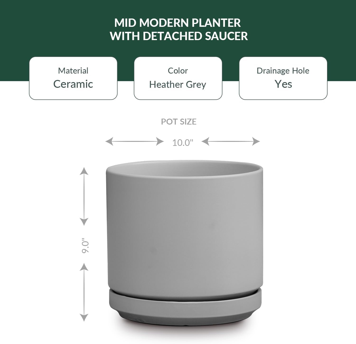 Ceramic Mid Modern Planter Pots with Detached Saucer - Indoor/Outdoor Plant Pots with Drainage Hole