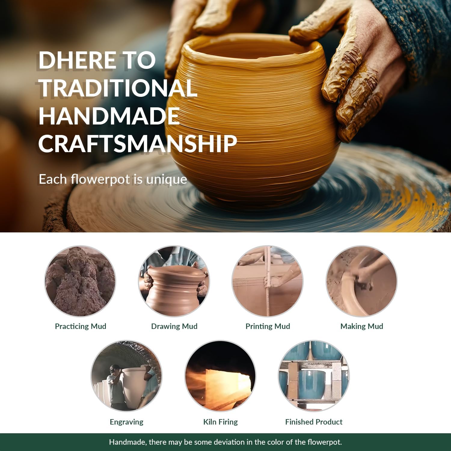 - 【Drainage Holes & Drip Pan 】The planter pot with drainage holes and saucers allows water to run off. No worries about over-watering your bonsai succulent! Better water infiltration and air movement are allowed to stimulate root growth, which results in healthier plants. If you tend to overwater, the indoor planters with unglazed clay and drainage holes would be your helper