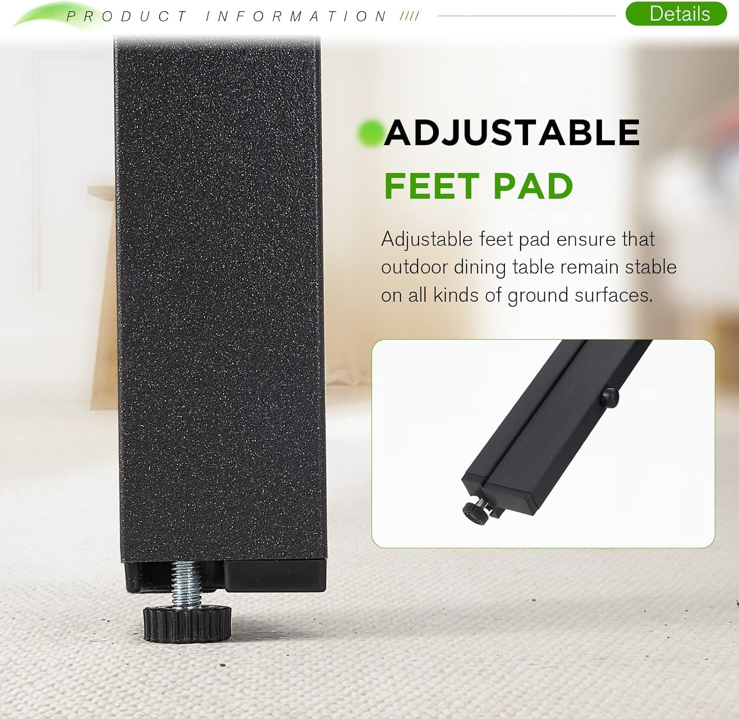 - SPACIOUS DINING AREA: The large rectangular 60''x35.5'' tabletop perfect for 6-people family dinner and party. Suitable for garden, backyard, deck, bistro and indoor places.
