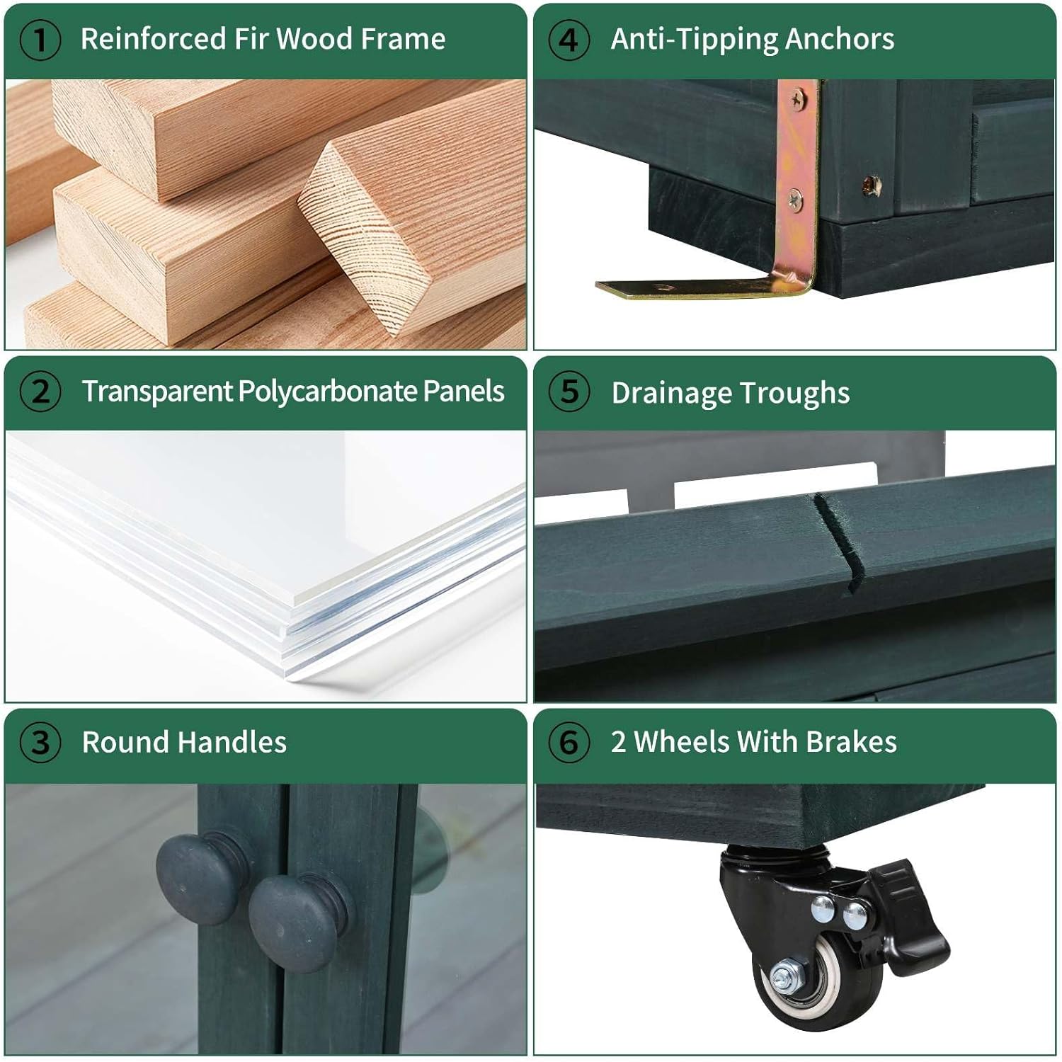 - STURDY FIR WOOD & POLYCARBONATE CONSTRUCTION: Our greenhouse combines natural fir wood frame with transparent polycarbonate panels that diffuse sunlight evenly, creating an ideal growing environment while protecting plants from harsh weather conditions, extending your growing season