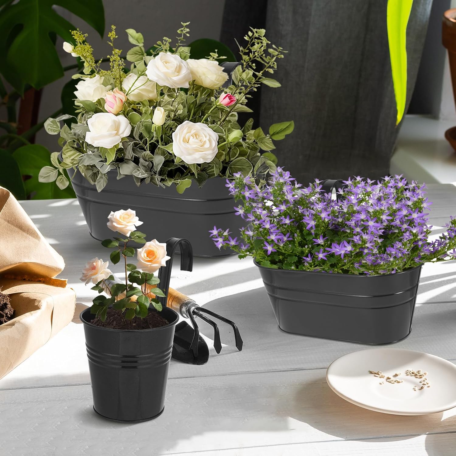 - 【SIZE DETAILS】Each set of Railing Flower Baskets contains 6 large flower baskets with dimensions of 16" x 5.9" x 6", 3 medium-sized flower baskets with dimensions of 10.6 " x 5.5" x 4.8", and 4 small flower baskets with dimensions of 3.8" x 3.8" x 4.0"(L x W x H).The Flower Basket Hook is included in the package and is very easy to install.