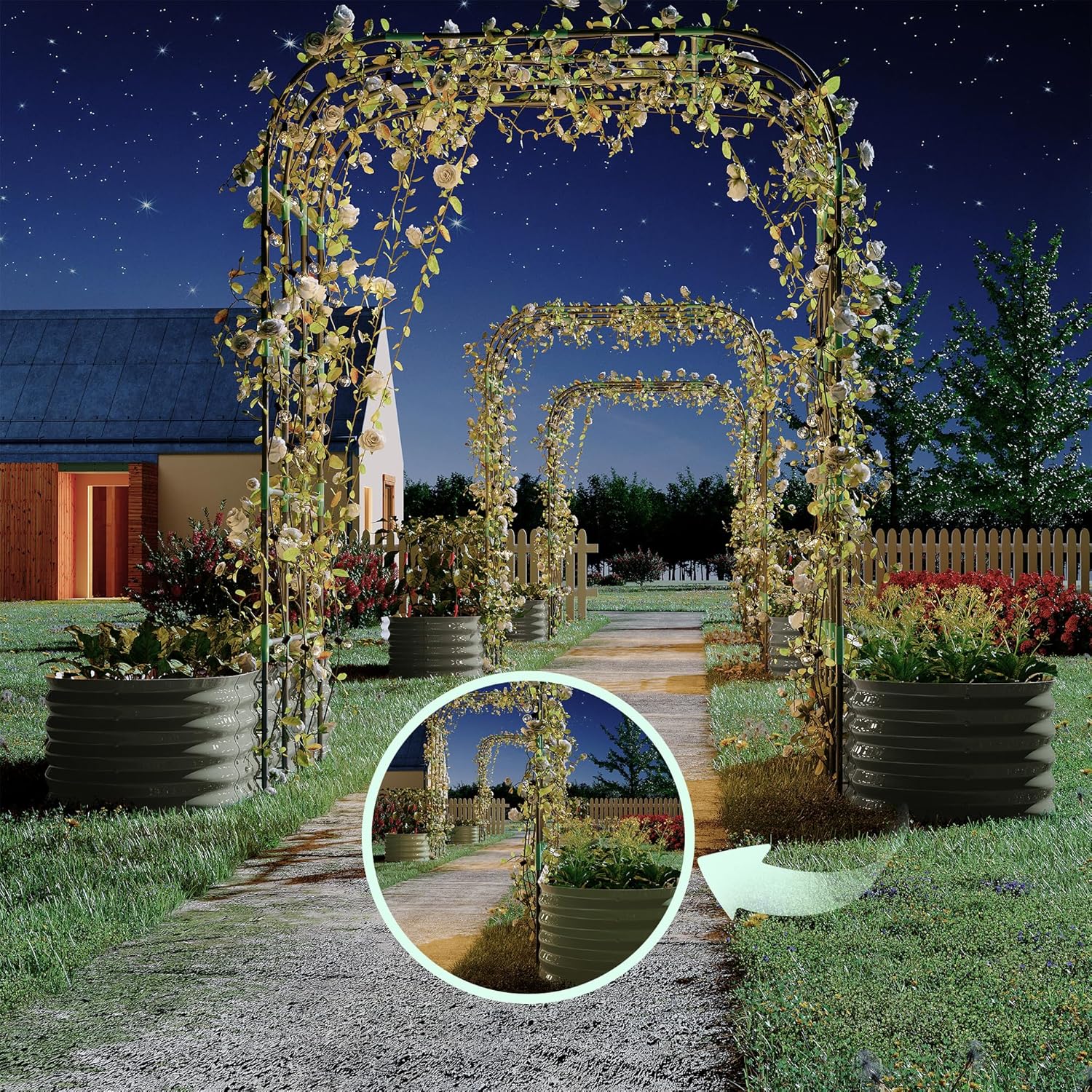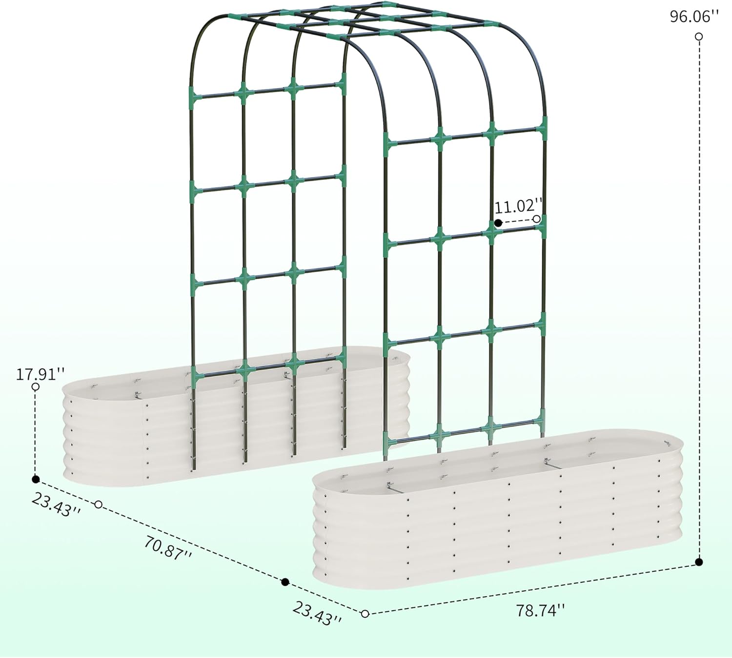 - 【Space-Saving Vertical Raised Garden Bed】 Maximize your garden’s potential with this galvanized raised garden bed featuring dual planter raised beds and a 96" arched trellis. Perfect for raised beds for gardening in small yards, patios, or greenhouses—grow more vines, flowers, and herbs while saving ground space.