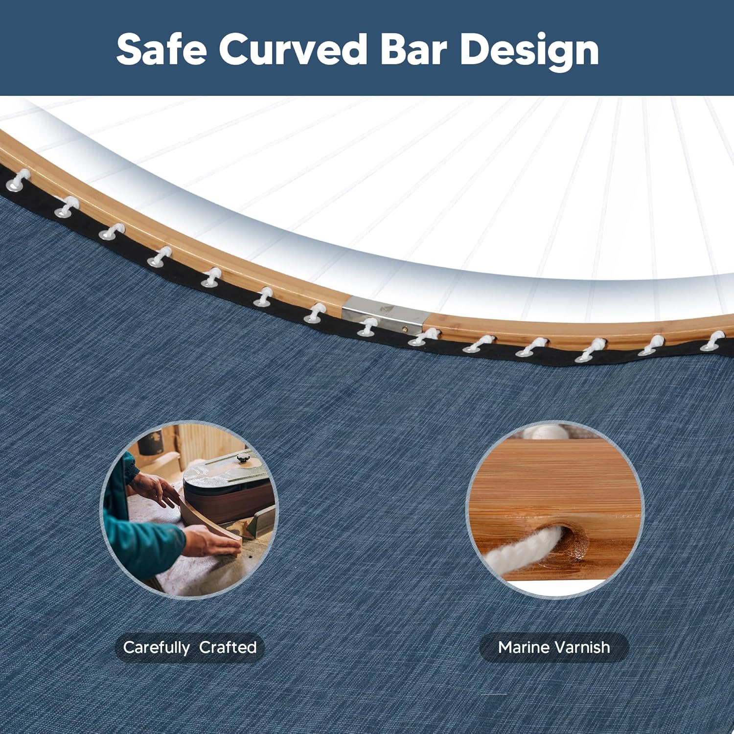 SUNCREAT Hammocks Two Person Tree Hammock, Heavy Duty Curved Bar Hammock for Poolside, Garden, Backyard, Patio, 450lbs Capacity, Navy