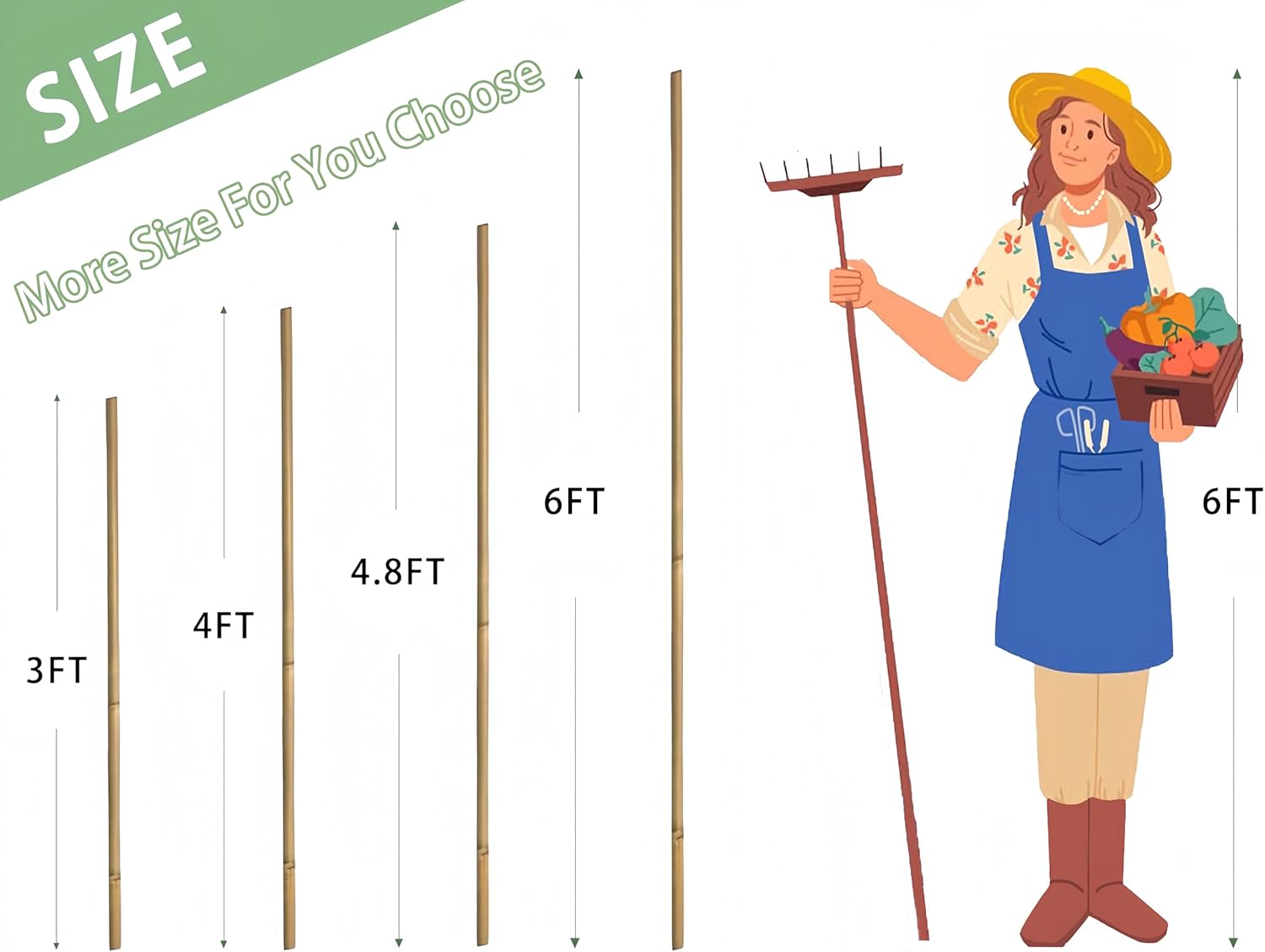 - [Multi-purpose] - This size bamboo pile is suitable for indoor plants such as flowers and potted plants, as well as outdoor plants such as tomatoes, beans, vegetables, young trees, large flowers and potted plants. As the plants grow, our bamboo posts are able to support the growth of the plants and make the plants grow straighter and more beautiful, or you can use some simple tools to make a bamboo frame, flower lattice or any other structure you want to add extra structural beauty to the garden