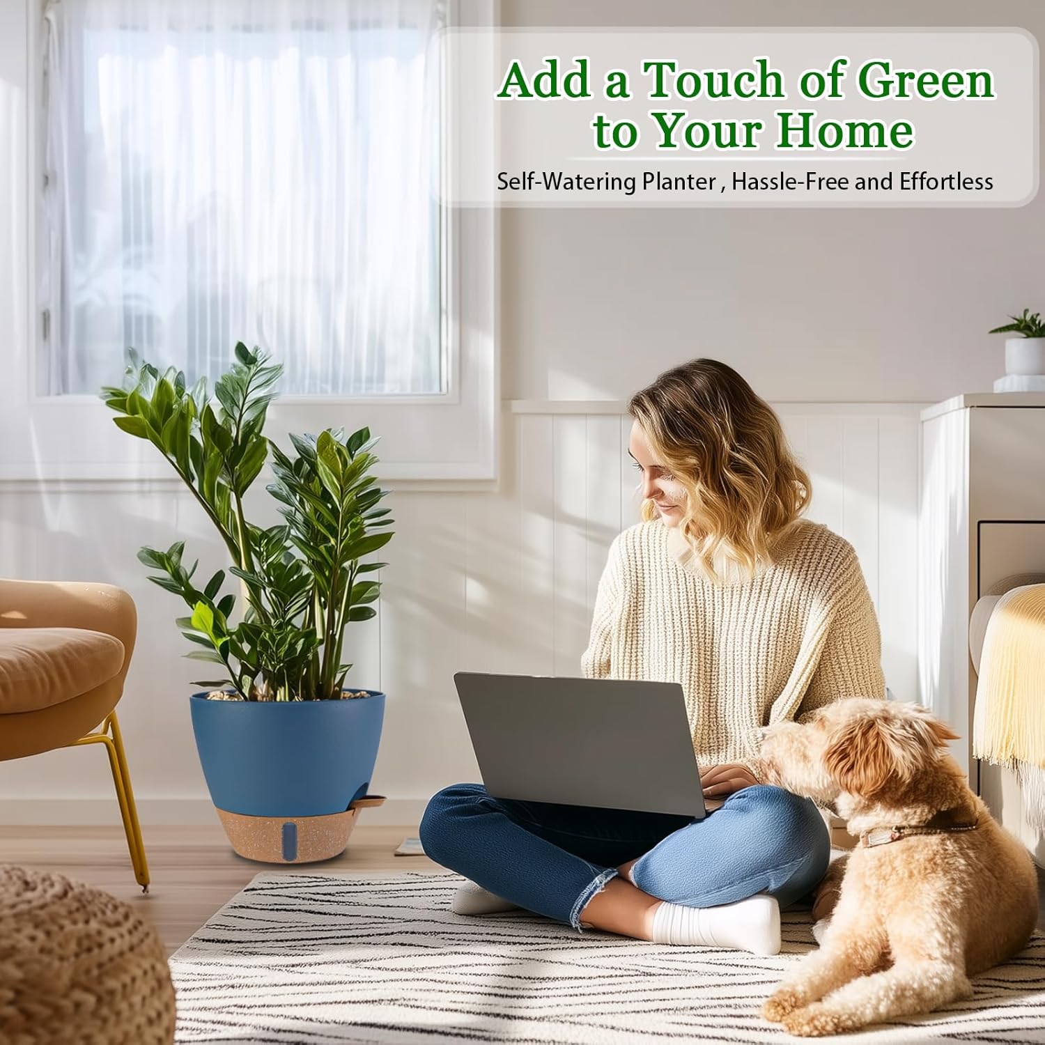 - 🌿 【Self-Watering Feature】The Fielda 10 Inch Plastic Planter comes with a built-in self-watering system that uses absorbent cotton wicks to draw water from the bottom tray into the planter. This ensures your plants stay hydrated with less effort, saving you from frequent watering. Whether you're a busy gardening enthusiast or away for long periods, you can easily maintain your plants' moisture balance, ensuring they get the right amount of water and nutrients.
