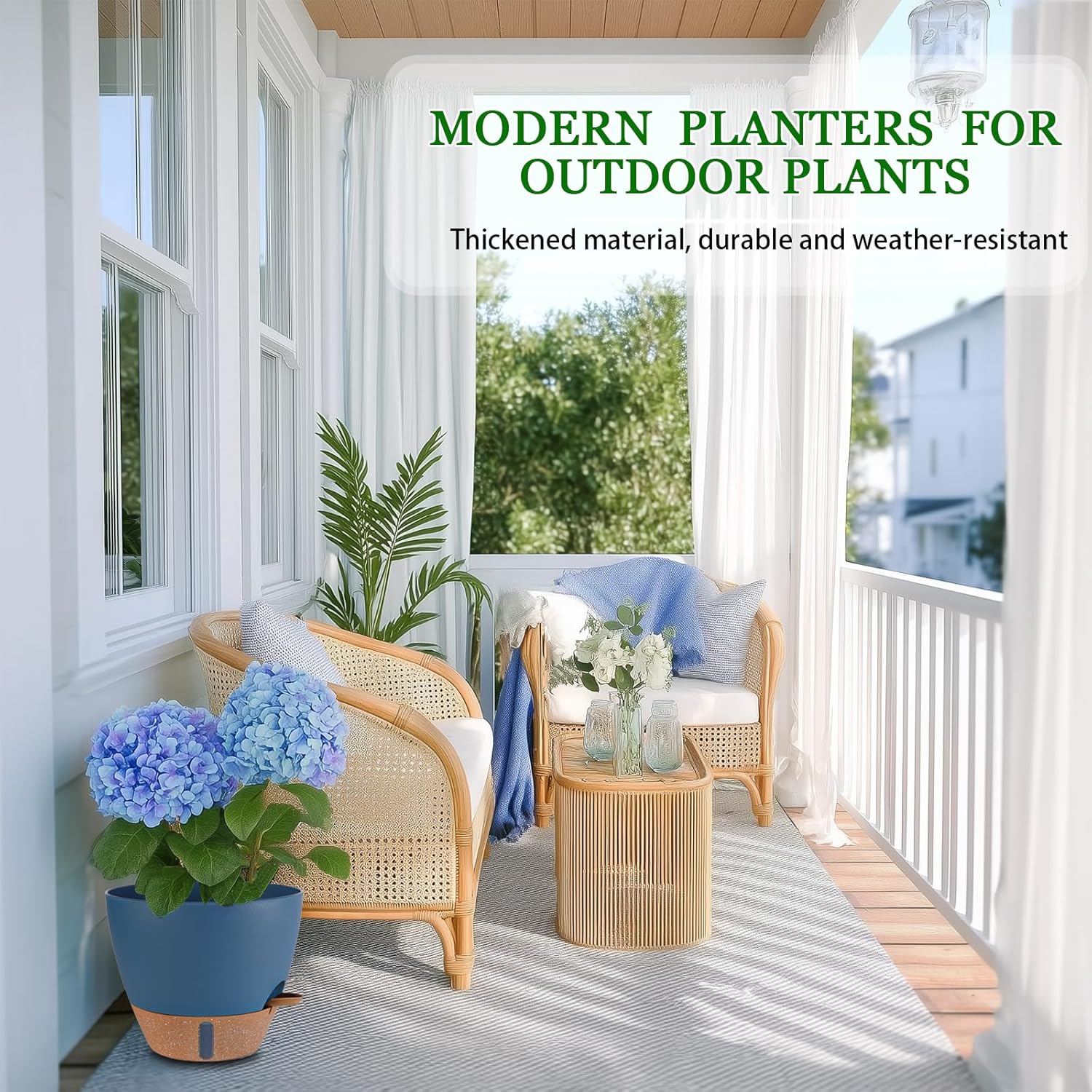 - 🌱【Detachable Tray & Convenient Watering】Each flower pot comes with a detachable saucer tray at the bottom, making cleaning and water management effortless while preventing overwatering and enhance root health. The strategically designed holes connecting the pot and tray allow for easy watering, efficient drainage, and optimal airflow, ensuring healthy root growth. Perfect for both indoor and outdoor plants, this planter is a must-have for gardening enthusiasts.