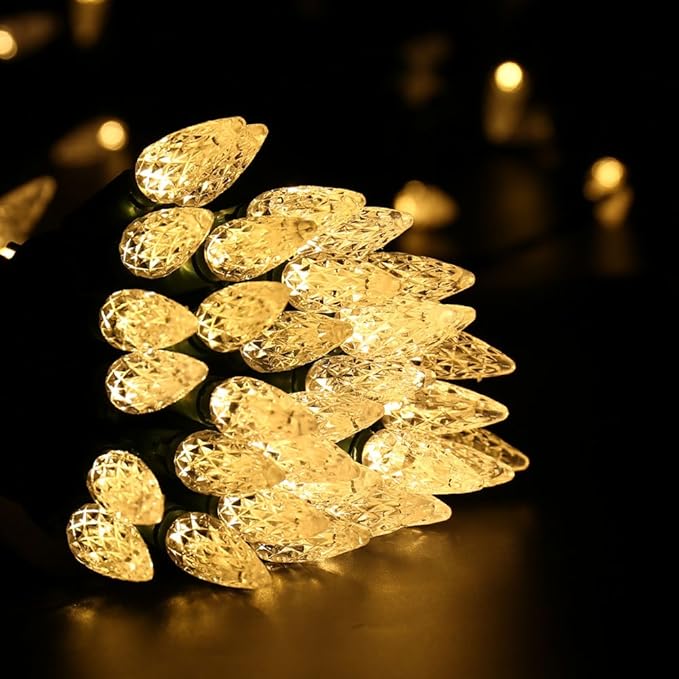 Brizled Christmas Lights Warm White, 33ft 100 LED C5 Faceted Christmas String Lights, 120V UL Certified Xmas Light Connectable Xmas Tree Light Indoor Outdoor for Home Tree Holiday Wedding Patio Decor