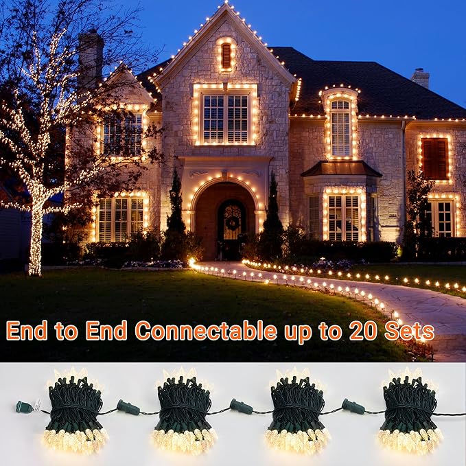 - Connectable: Connect end to end up to 20 sets(2000 lights), allow you to decorate your home both inside and outside with your desired length; UL Certified great value and quality, Replaceable fuse plug; Extra bulbs and fuse included.