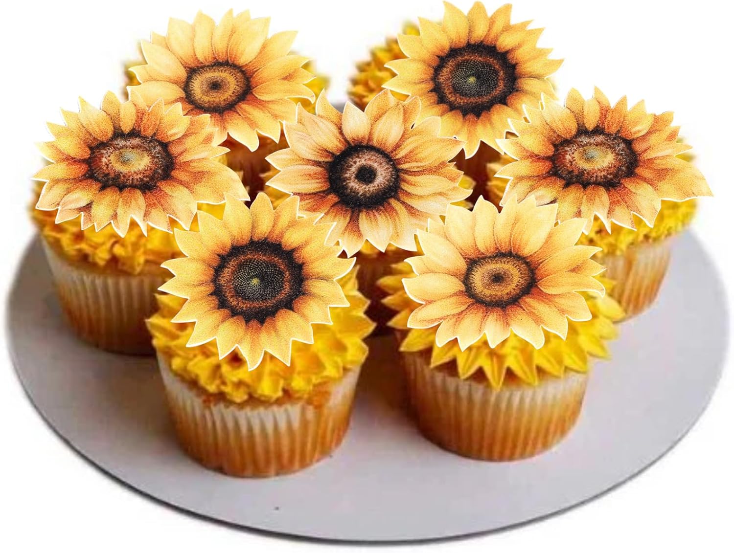 - Unique Design and Proper Size! Brace yourself for a ton of compliments.Your guests will love the unique sunflower design on the cake and cupcake, these edible sunflower cupcake toppers can be used at different theme party decorations