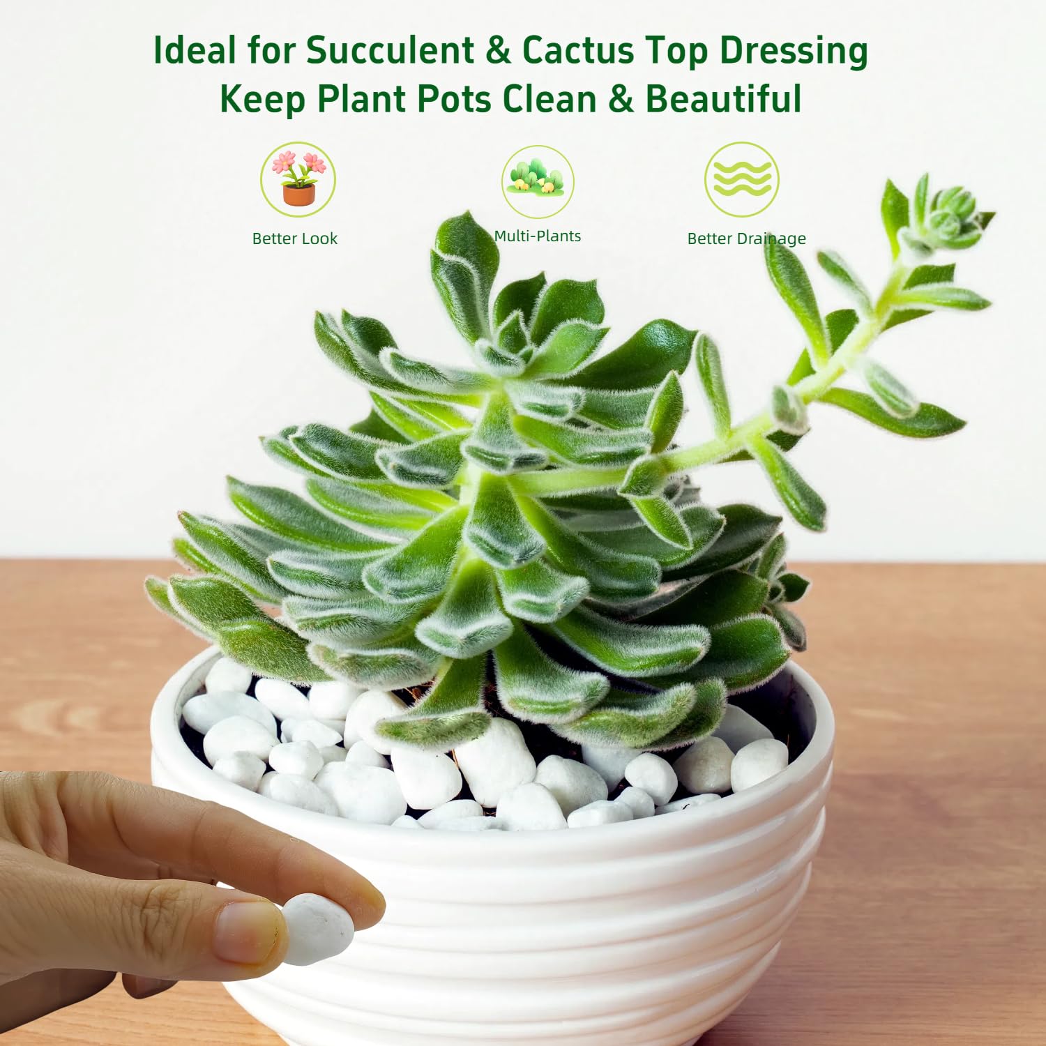 - 【Top Dressing for Succulents, Cactus & Potted Plants】 The small white pebble stones use as a protective top layer for succulents, cactus, and indoor potted plants. Great for balcony garden, indoor pots, and bonsai planters.