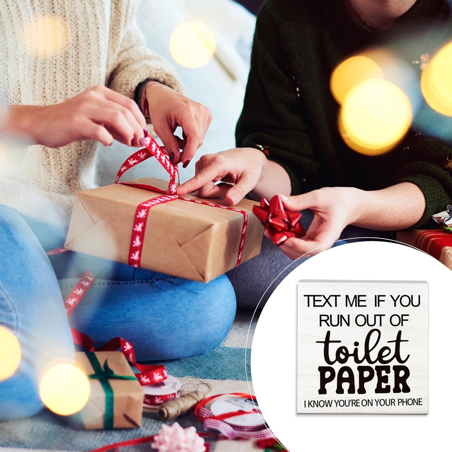 Text Me If You Run Out Of The Toilet Paper Wooden Sign - Funny White Block Plaque Desk Decoration-5x5 inches Wood Block Gifts For Friends Family-Restroom Bathroom Tabletop Favors & Supplies-A06