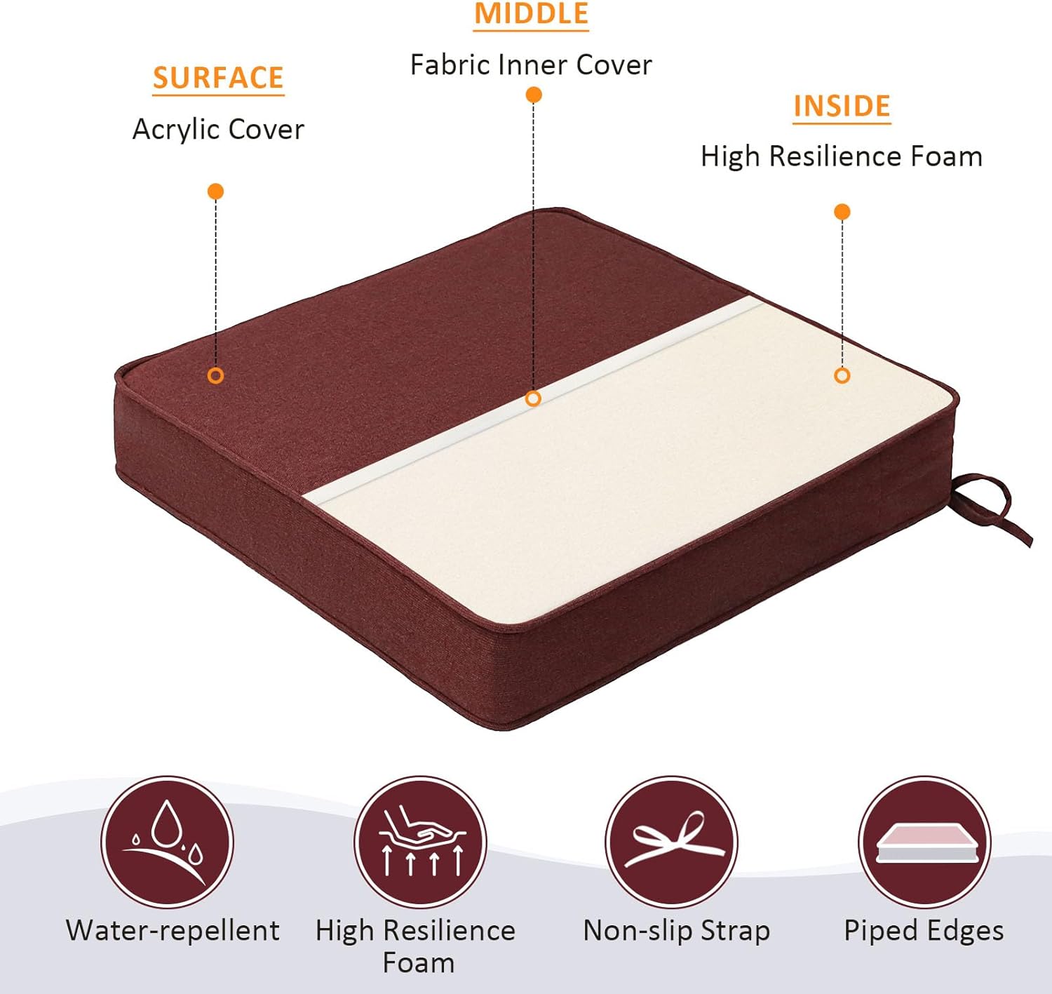 Sunbrella Square Corner Seat Cushions, 18.5" x 16" x 3", Set of 4, Indoor Outdoor Water Repellent Universal Chair Pads with Ties for Patio Furniture, Garden Dining Chairs, Spectrum Brick