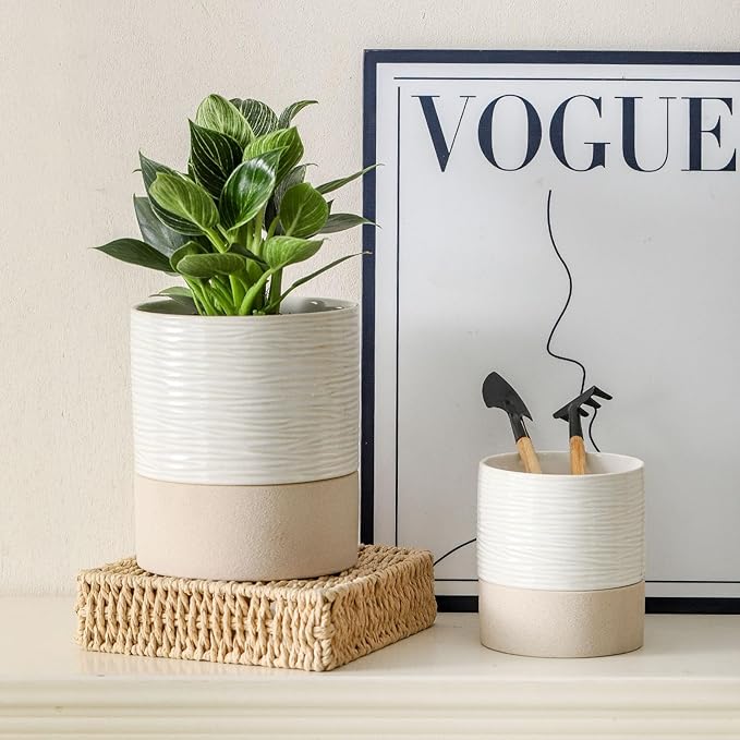 - DIMENSION & COLOR - This modern round ceramic planter pots is the good size for of plants. Works well with orchid, cactus, succulents, African violets, spider plants, vanilla ,even artifical flower and so on.fluid lines of the pot create a sense of movement and add a unique focal point to your indoor or outdoor decor.