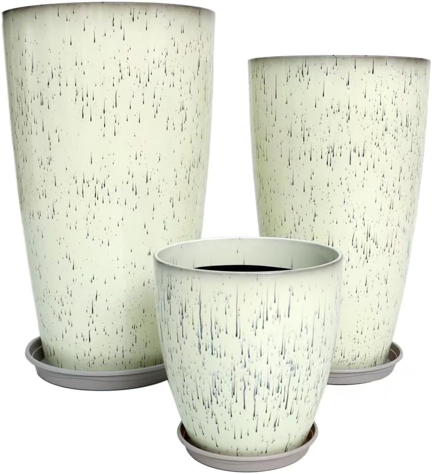 24,21,11 Inch Large Plastic Planters with Drainage Hole and Saucer - Set of 3 Tall Plant Pots Indoor Flower Pot Tall Round Planters Outdoor Large Tall Planter