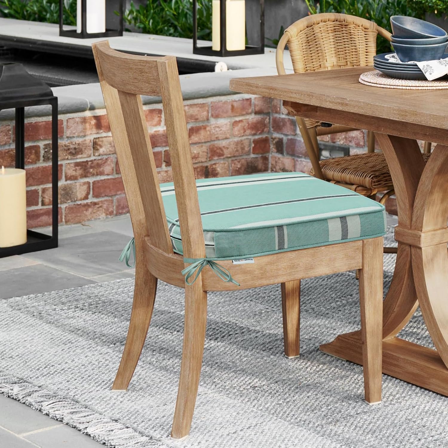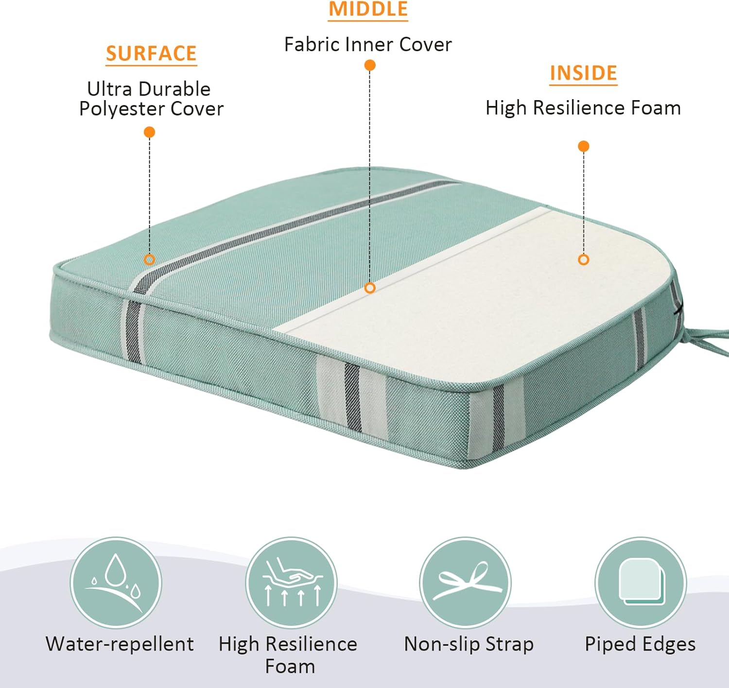 - 【Non-slip Ties and Piped Edge】 The two non-slip ties can be fastened to your furniture to keep the outdoor cushion in place. Some seams are finished with piping, which reinforces the edges and makes the outdoor furniture cushion more stylish.