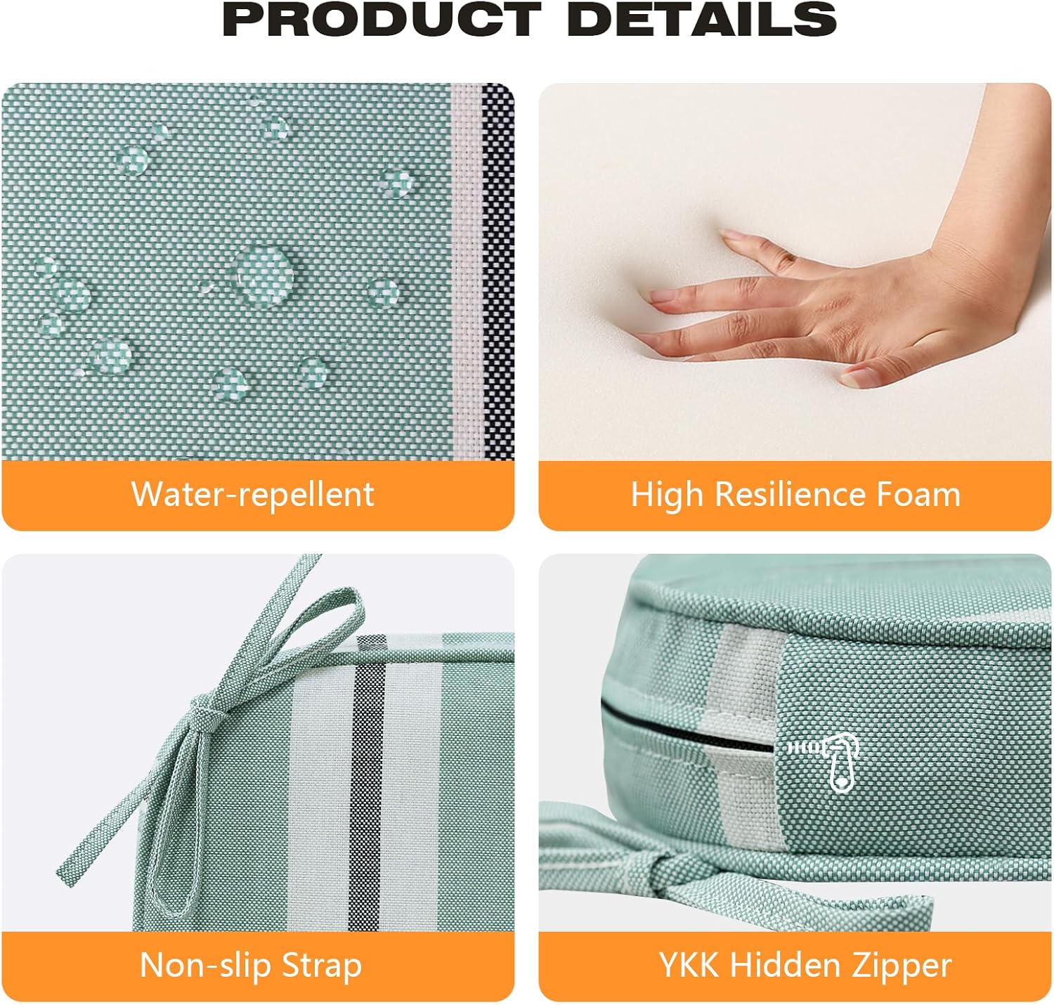 - 【Water Repellent and Removable Cover】 Made of eco-friendly, sturdy polyester fabric with a water repellent coating, the cushion cover is UV-protected and fade-resistant, providing you with a comfortable outdoor experience. The removable cover features a covered YKK zipper for easy cleaning and replacement.