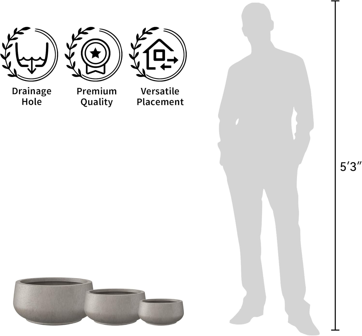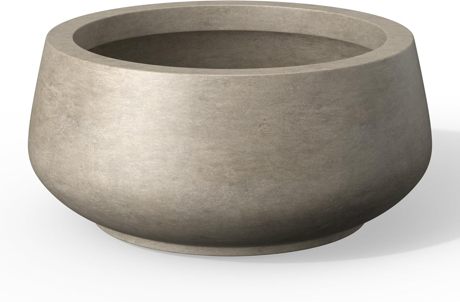 Kante 16.9" Dia Round Concrete Bonsai Planters, Outdoor Indoor Garden Plant Pot with Drainage Hole for Home, Patio, Garden, Weathered Concrete