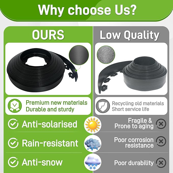 - Easy to Install: No dig the lawn, just bend it the shape of the landscape what you want, then stake garden liner edging in the shape you want with spikes every 2-3 holes. This plastic lawn edging is easier to trim to any length to separate garden flower bed areas than metal garden edging!