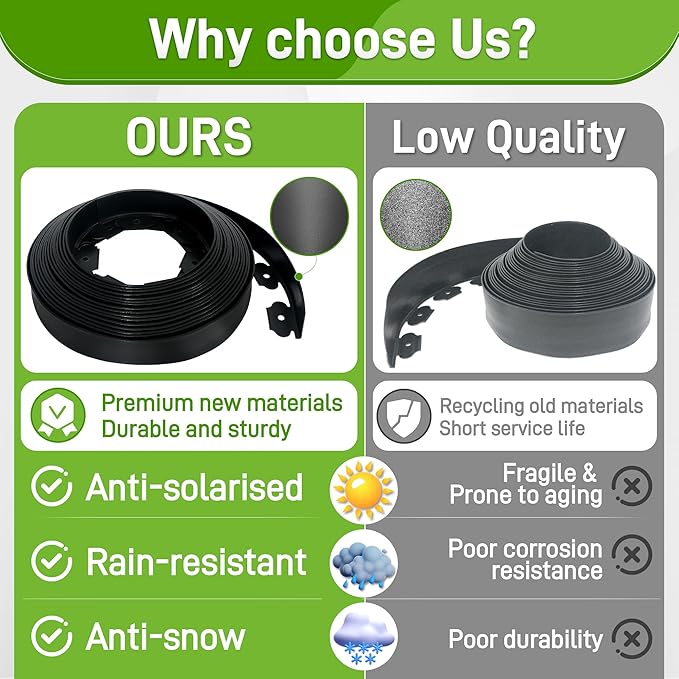 - Flexible and Durable: This plastic garden edging border made of durable PE material. It won't rust and will keep the garden looking good for a long time. Landscaping edging is easily into bends without breaking, soft material can be cut to fit your exact need. The spiral spikes are made of tough nylon, won’t rust or deteriorate, reusable, longer service life.