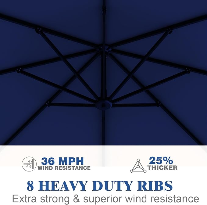 - Sturdy Steel Ribs: Enjoy unparalleled stability with our premium offset umbrella, boasting 8 heavy-duty ribs that ensure exceptional stability even in windy conditions