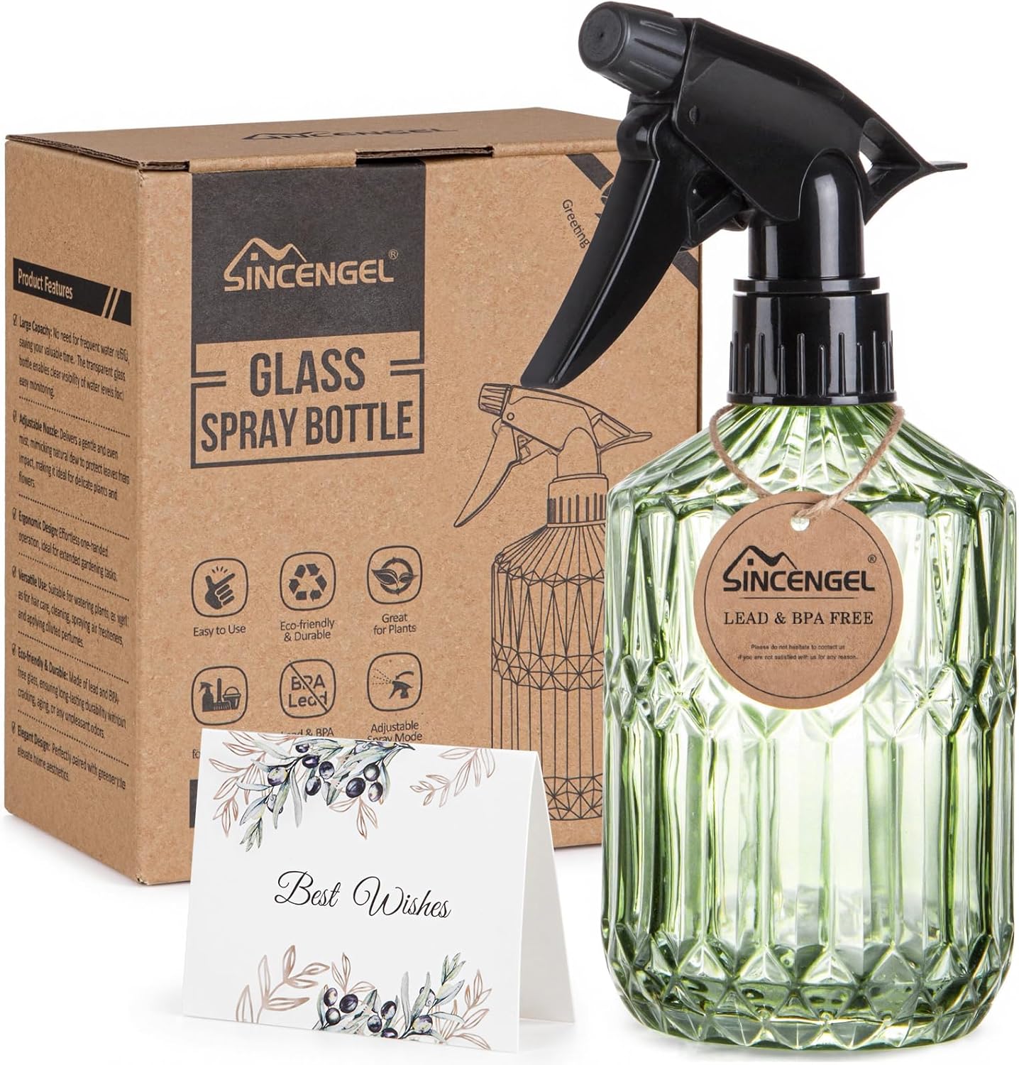 Glass Plant Mister Bottle - 13.5 oz Refillable Leak Proof Water Spray Bottle for Indoor Plants, Spring Gardening,Cleaning, Hair, Pets Care with Adjustable Mist Nozzle (Green)