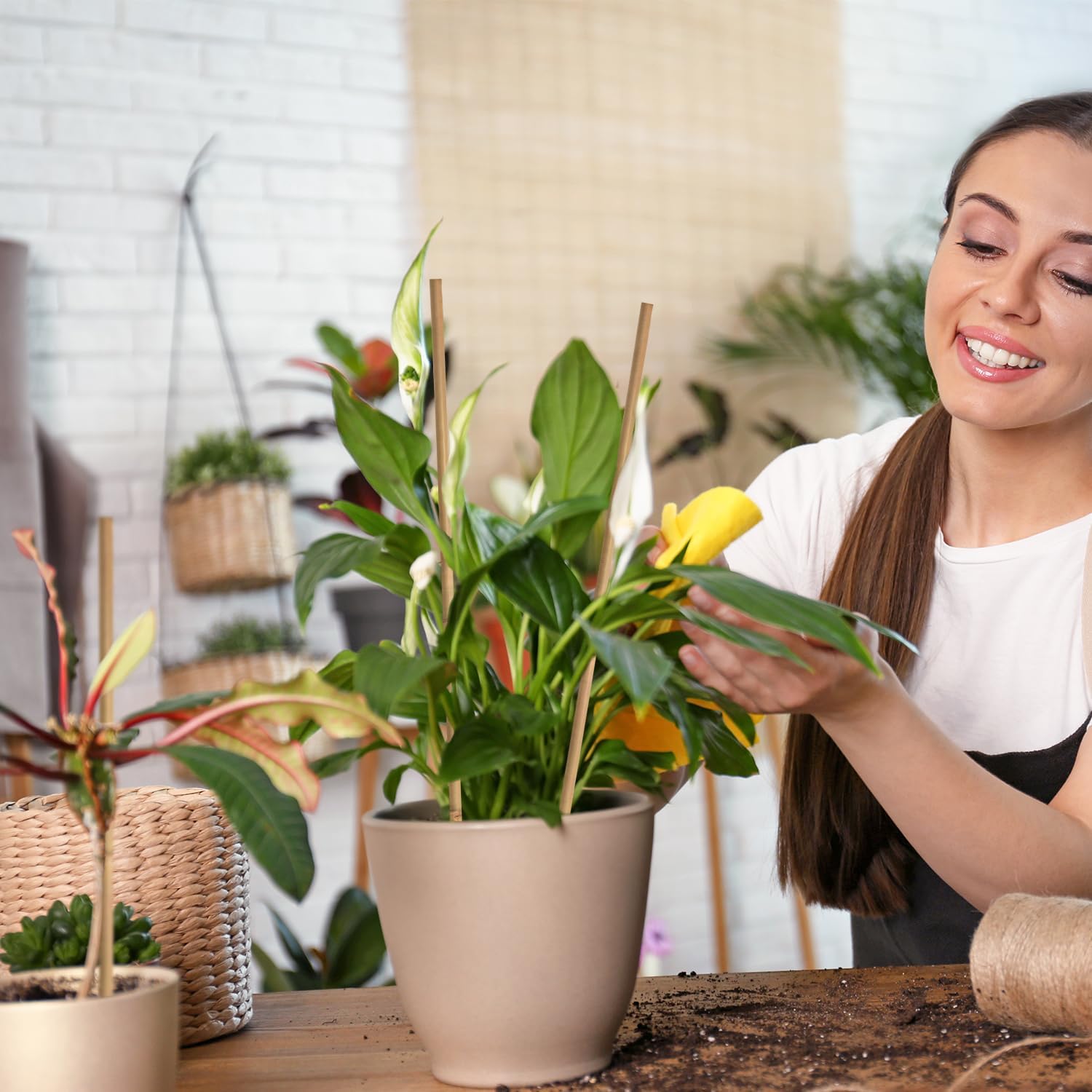 - Natural Bamboo Material:Crafted from high-quality natural bamboo,these plant stakes are Eco-Friendly,safe for your plants and family,and free from harmful chemicals.Durable and reusable,bamboo stakes won’t require frequent replacement,making them a sustainable choice for your garden.