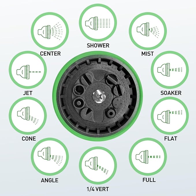 - 10 ADJUSTABLE SPRAYER PATTERNS:The high pressure hose nozzle has 10 adjustable hose sprayer patterns, and lets you to use high pressure hose nozzle for watering your patio lawn, gardening and washing your cars and pets.