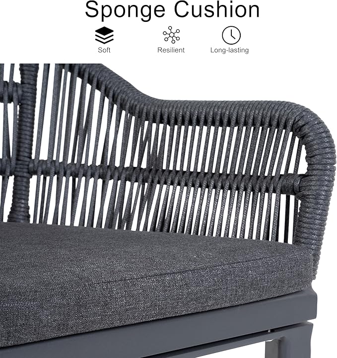 PURPLE LEAF 5 Pieces Oversized Square Patio Dining Set with Outdoor Aluminium Dining Table and Woven Chairs Modern Metal Furniture Cushions Sets for Garden Yard Indoor Decor Kitchen Gray