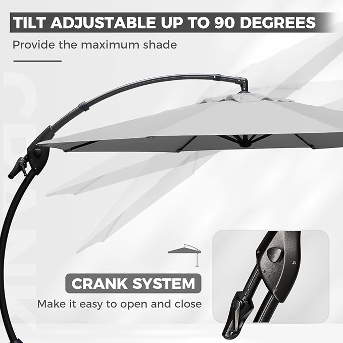 - Quick Assembly & Reliable Warranty - Shipped in two packages with all necessary tools, hardware, and instructions, this outdoor cantilever umbrella can be assembled by one person in about 30 minutes, and is backed by a five‑year warranty on the canopy and a one‑year warranty on the frame and base