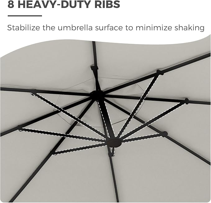 - Durable Construction - Designed for durability, the 12 ft patio offset umbrella is built with a 2.4″‑diameter aluminum pole and eight reinforced steel ribs, all treated with industry‑leading anti‑corrosion coating for maximum rust protection