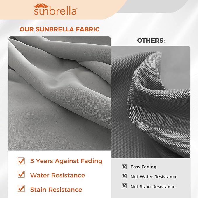 - Premium Sunbrella Fabric - The canopy is crafted from 270 g/m² Sunbrella solution‑dyed acrylic that remains breathable, water‑ and stain‑resistant, offers UPF 50+ protection, and resists fading for up to five years
