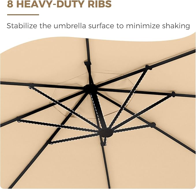 - Durable Construction - Designed for durability, the 12 ft patio offset umbrella is built with a 2.4″‑diameter aluminum pole and eight reinforced steel ribs, all treated with industry‑leading anti‑corrosion coating for maximum rust protection