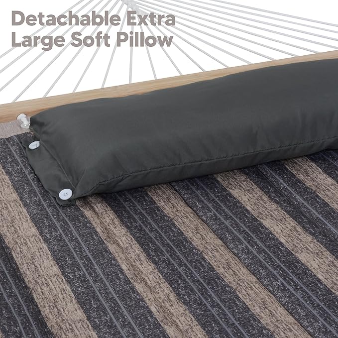 SUNCREAT Hammock with Stand 2 Person Heavy Duty, Freestanding Hammock with Spreader Bar, Soft Pillow, Gray Stripes