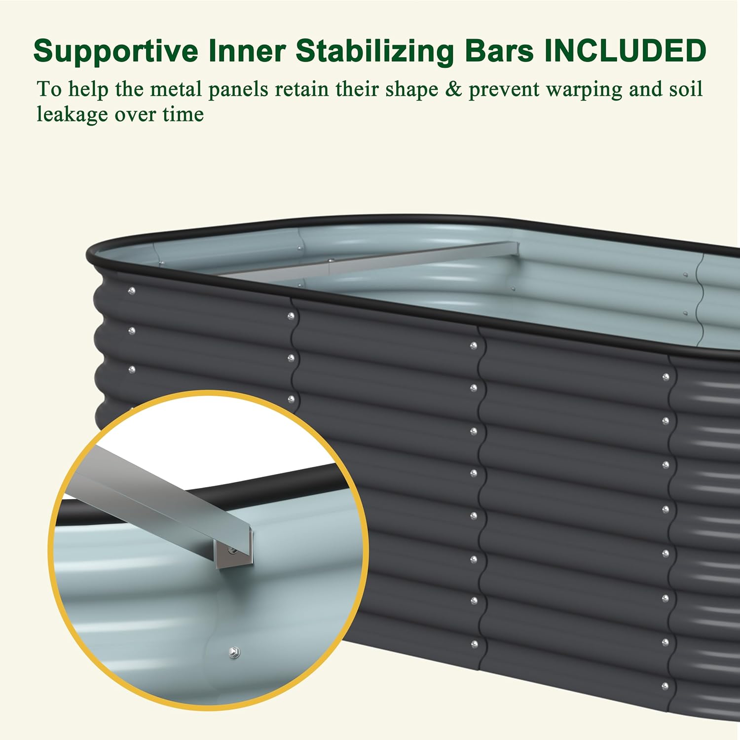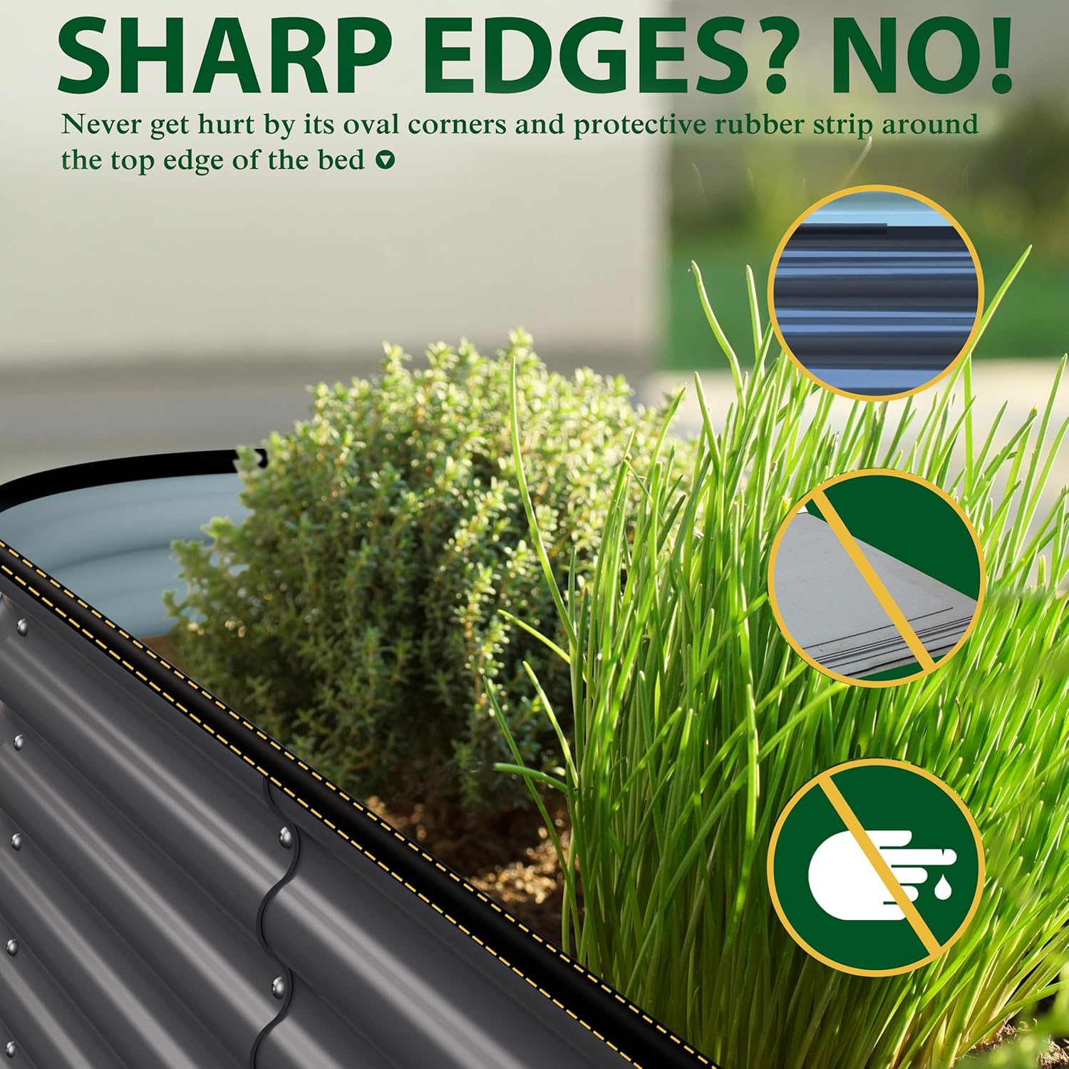 - OPEN-BASE RAISED GARDEN BED - The galvanized raised garden bed outdoor for vegetables with bottomless design for better performance in water drainage on the soil or grass, making the roots of plants grow healthier. The oval growing garden planter box can be used to grow any vegetables as lettuce, beans, tomatoes, potatoes or any flowers for indoor and outdoor growing. The 24" tall design of garden bed requires less bending down for gardening and protects your plants from your pets.