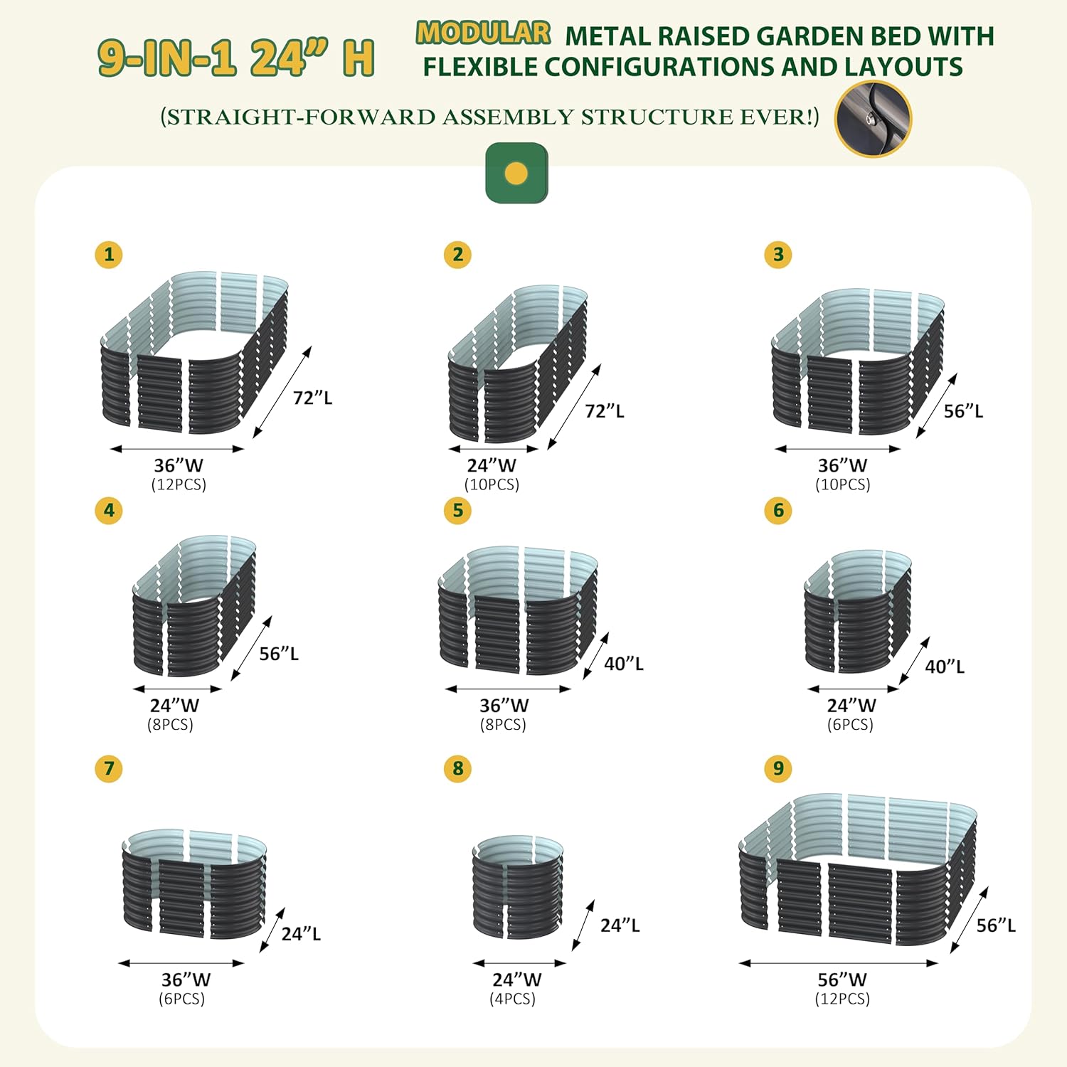 - 9-IN-1 CUSTOMIZE YOUR GARDEN - The garden planter box with 4 corner panels and 8 side panels for 9-in-1 modular kit, meaning you can modularize metal raised garden bed with flexible configurations and layouts. Owning this outdoor galvanized raised garden bed for vegetables, you can create a variety of options that perfectly fit your diverse planting ideas. This raised garden bed kit in pearl white color would be a great addition for your patio, porch, deck and garden.
