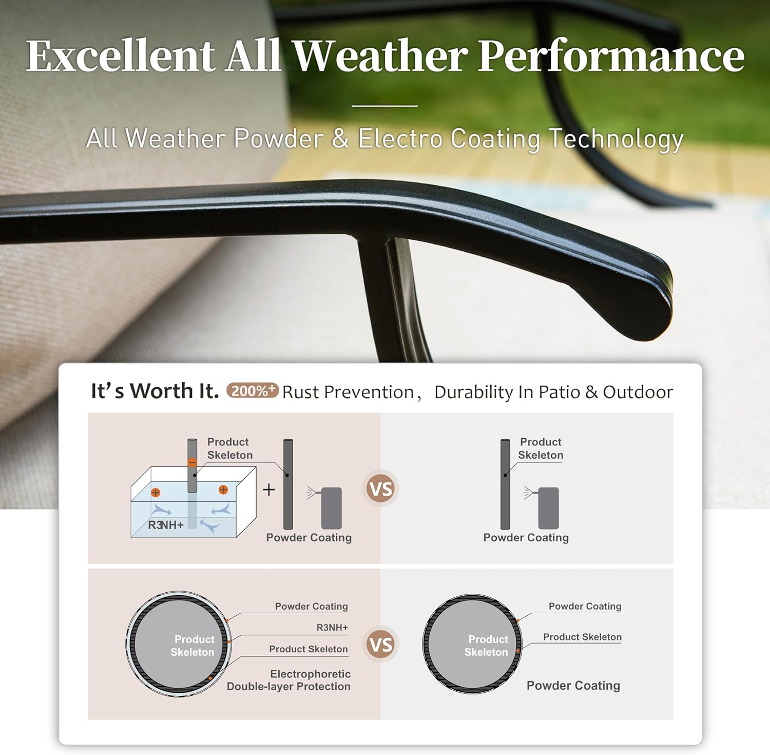 - ADVANCED CUSHION FABRIC TECH: Experience the happiness of easy maintenance with the SUNSHINE VALLEY outdoor rocker chairs. The fabric of this patio sofa is made with patent CUSHION PRO technology. It has excellent waterproof, oil-proof, and stain-resistant properties making the dirt easily wiped down. It can really meet your outdoor leisure needs
