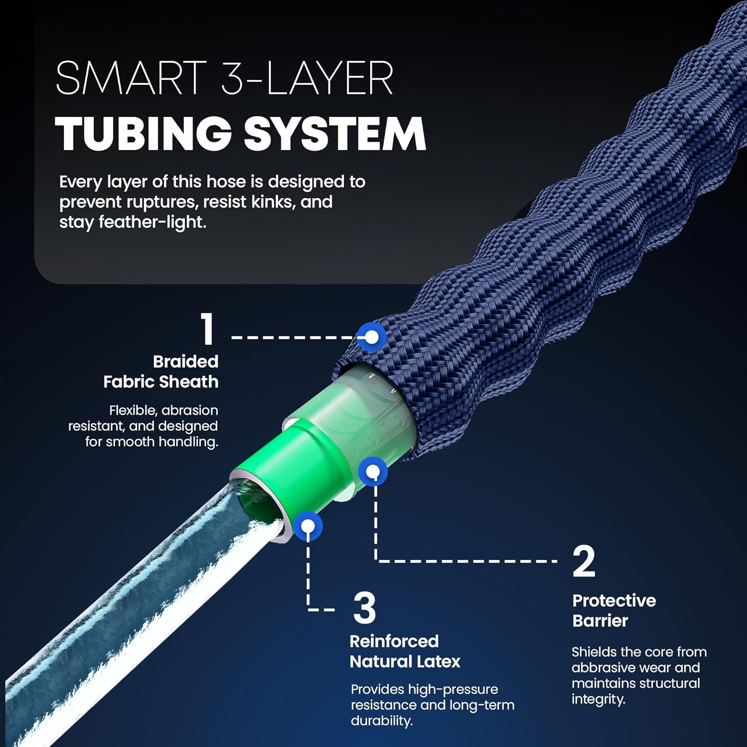 - [Universally Compatible Kink-Free Design] Engineered with standard 3/4" GHT, corrosion free, pure brass connectors, our hose fits a wide array of faucets nozzles and accessories. The ultra flexible, never kinking design contributes to a hassle-free watering experience. The triple layer construction provides a durable and manageable garden hose with dependable performance in various weather conditions.