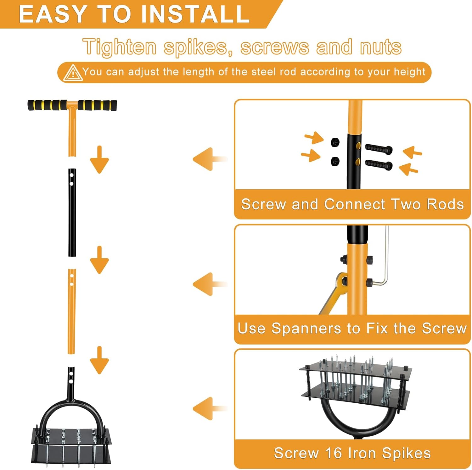 - 【Heavy Duty & Rust-Resistant Build】Crafted from reinforced iron with powder-coated protection, this yard aerator tool withstands heavy foot pressure and tough soil. The welded footplate and spike base ensure stability and long-lasting durability. This lawn aerator tool is built to last.