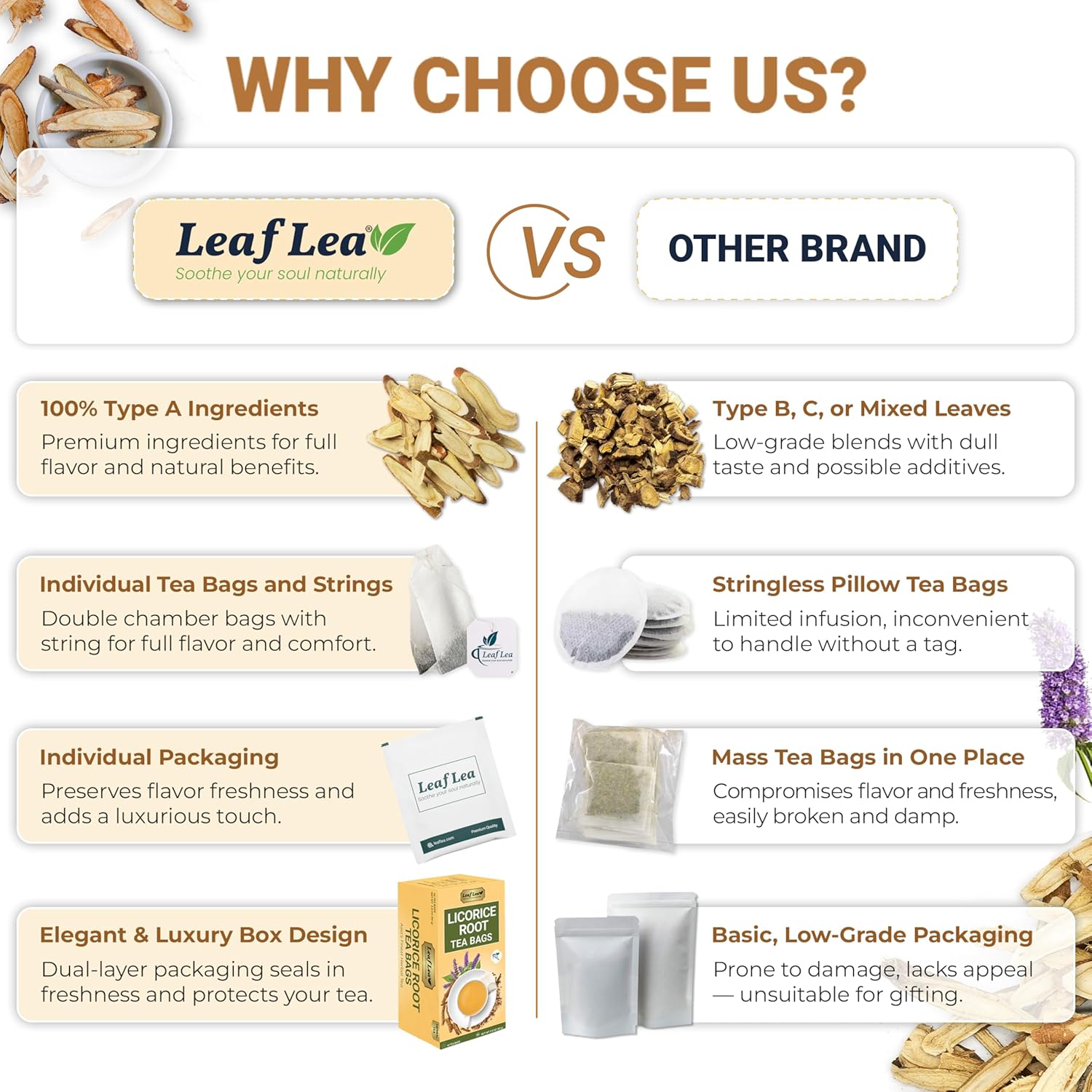 - Convenience in Every Cup: Each LeafLea Licorice Tea bag is carefully sealed to preserve the rich, soothing taste of real licorice root. Neatly stored in a durable box, it’s perfect for daily use at home, easy to carry on-the-go, or shared as a gift.