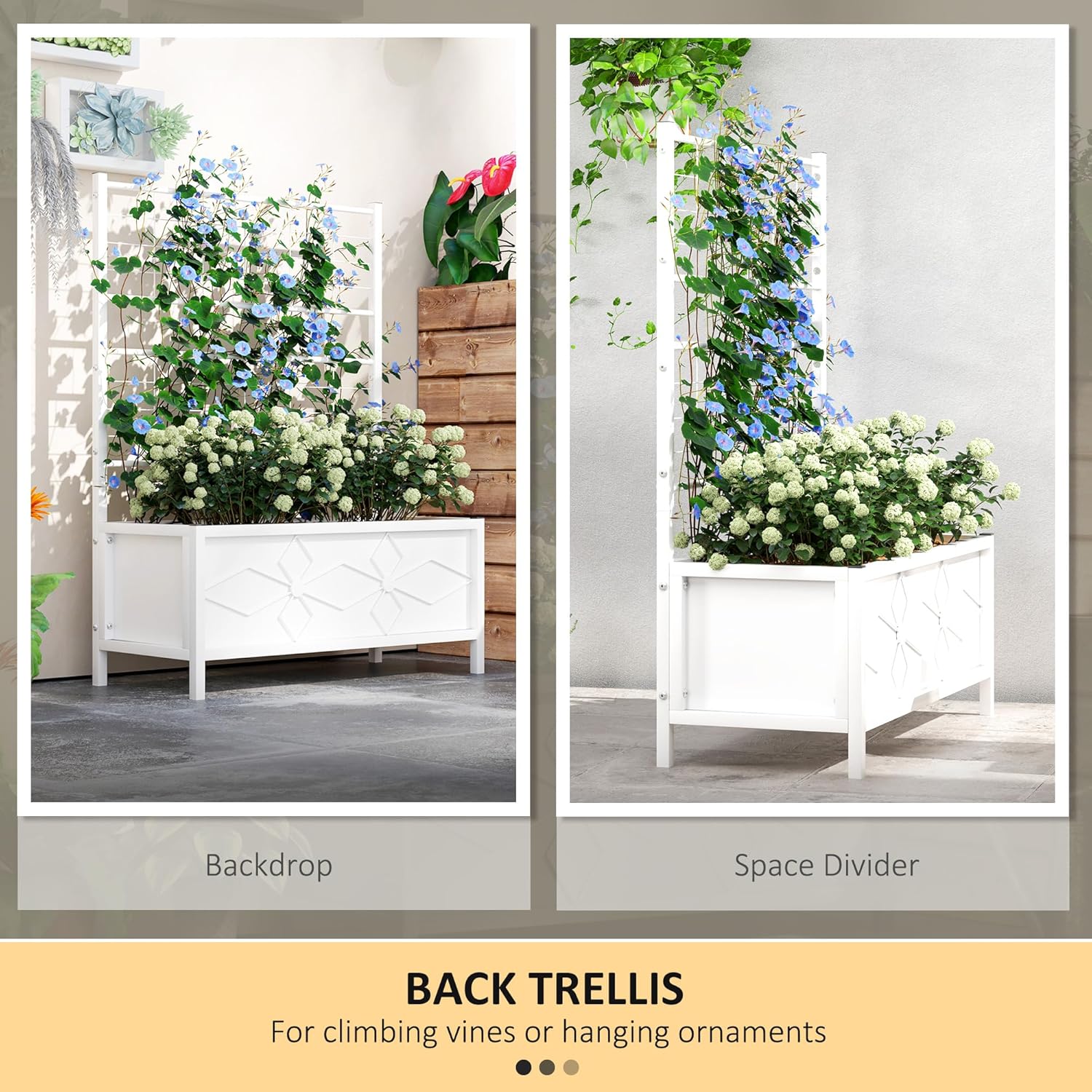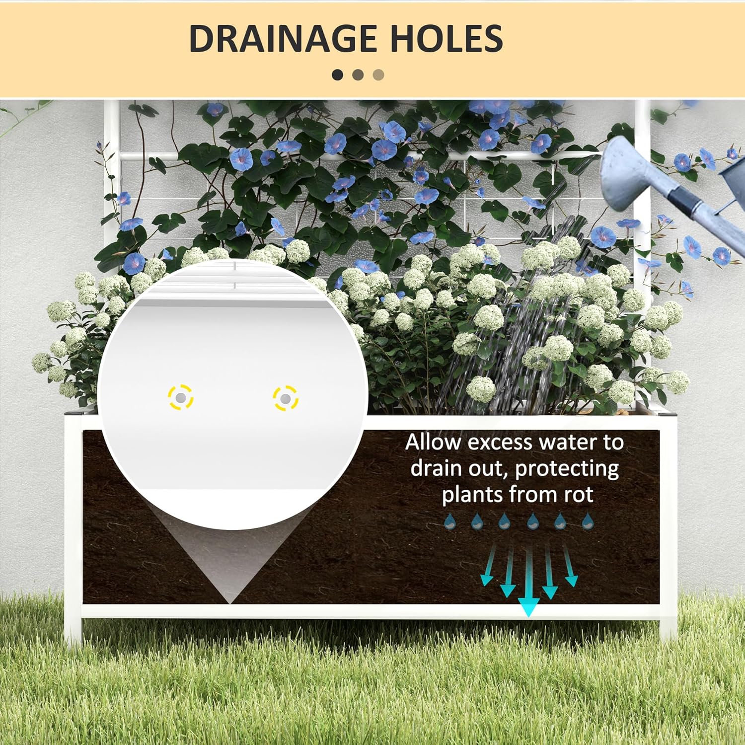 Outsunny Planter Box with Trellis, 35.4 x 15.7 x 47.2 inch Raised Garden Bed with Drainage Holes, Planters for Outdoor Plants, Vegetables, Flowers, Herbs, Trellis Planter, White