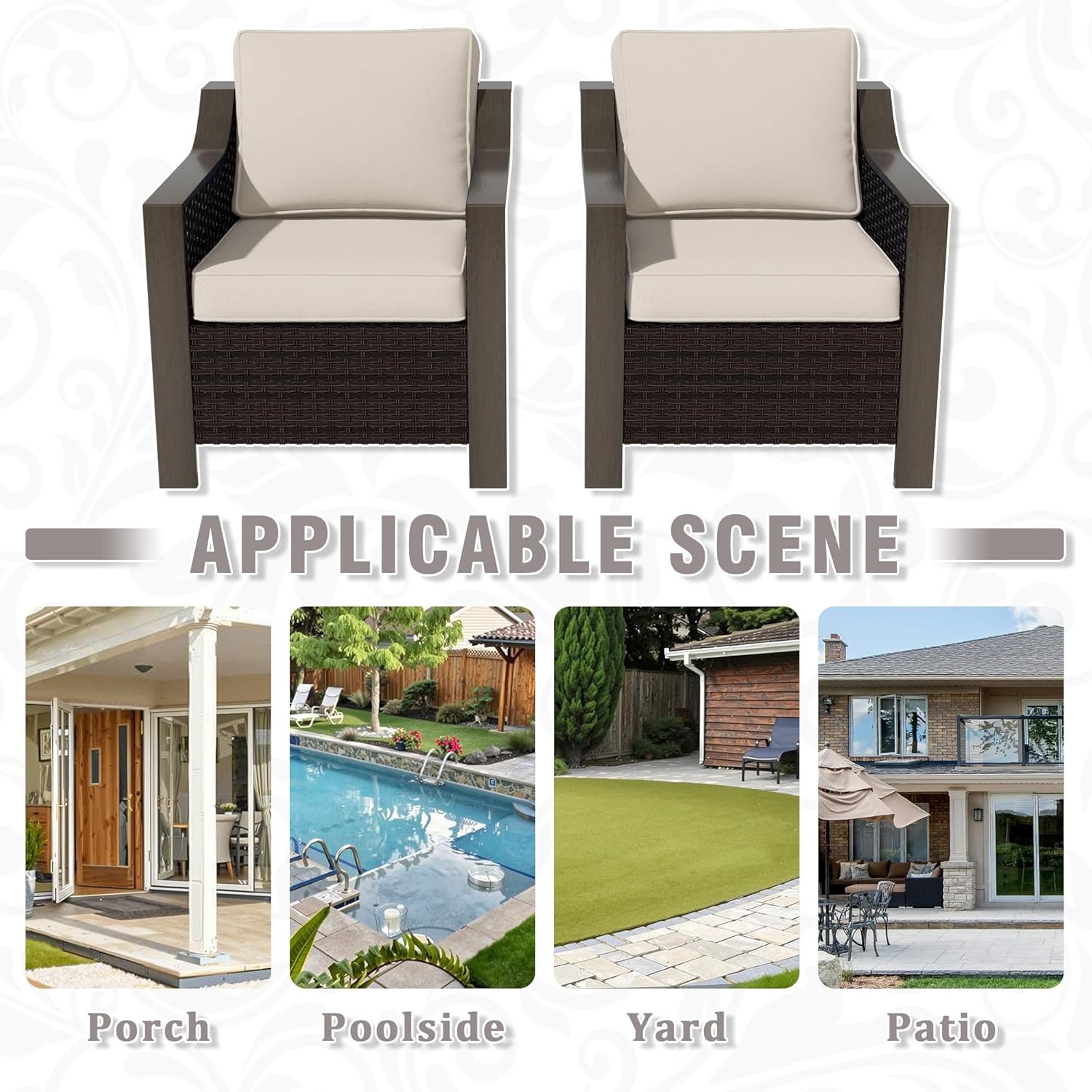Outdoor Wicker Chair Set of 2, All-Weather Use Patio Rattan Chair with Removable Water-Resistant Cushion, Ideal for Porch, Backyard, Balcony, Poolside, Beige
